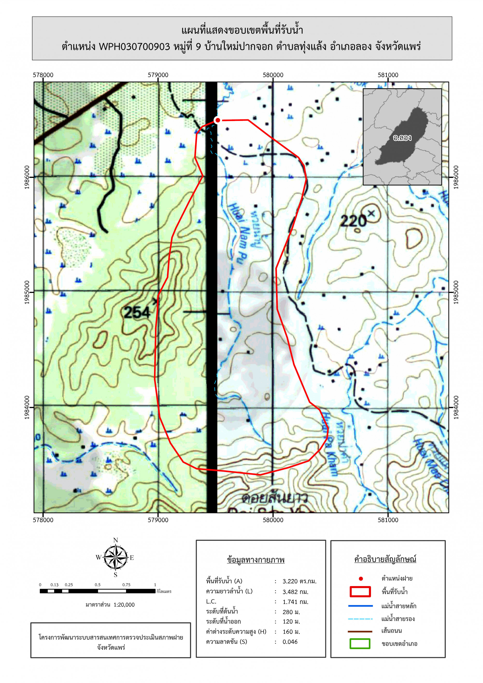 รูปภาพแผนที่แสดงขอบเขตพื้นที่รับน้ำ