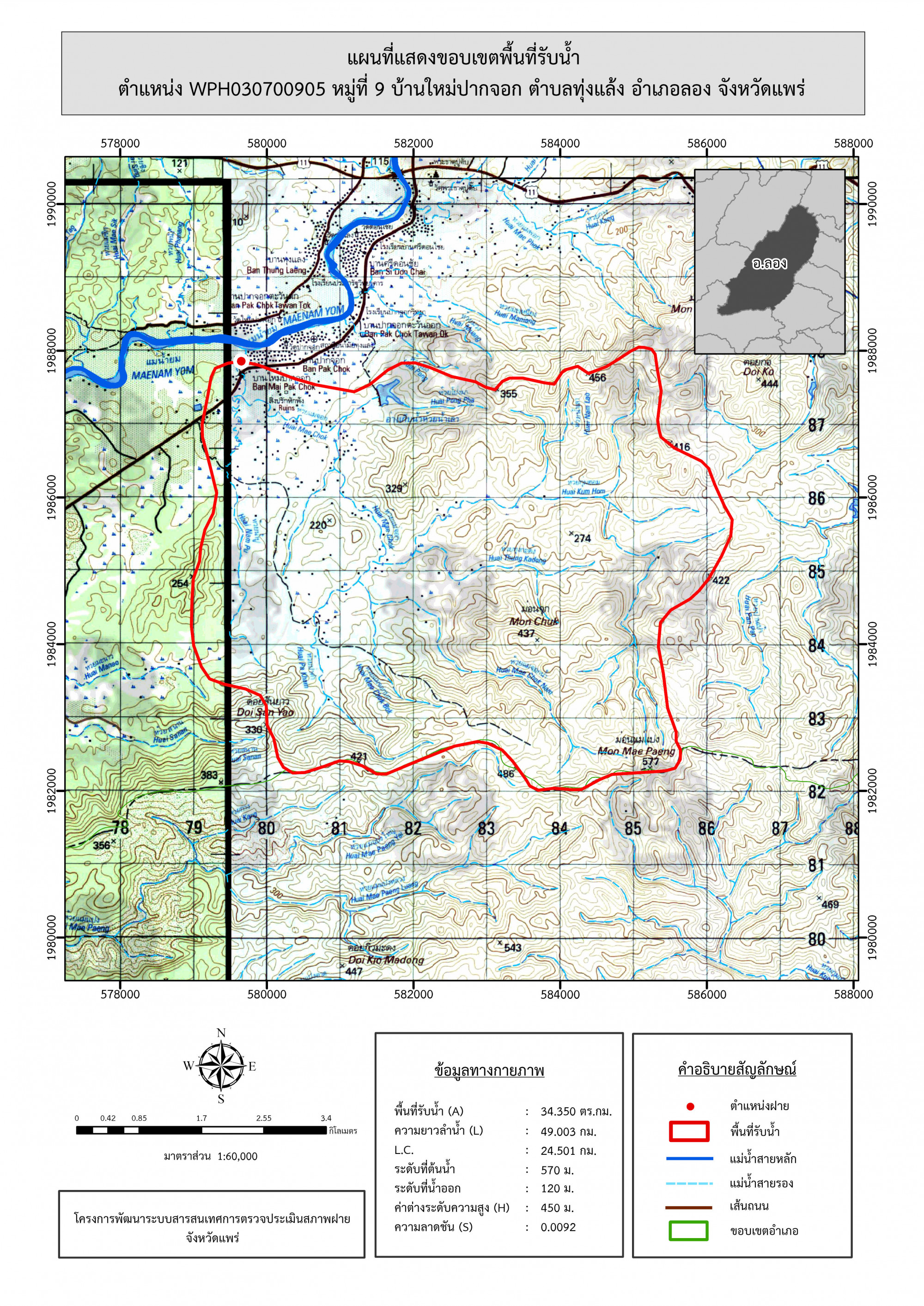 รูปภาพแผนที่แสดงขอบเขตพื้นที่รับน้ำ