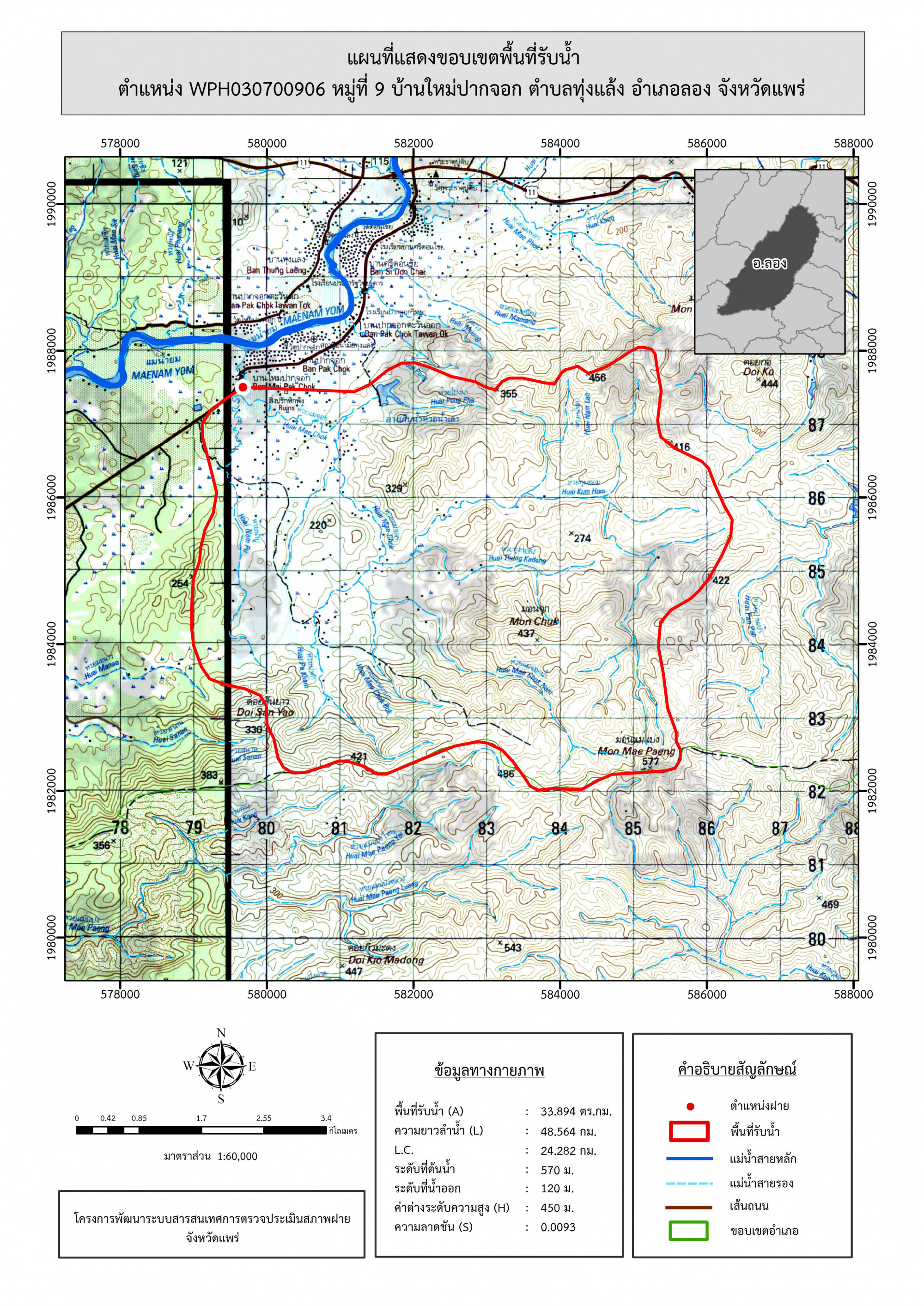 รูปภาพแผนที่แสดงขอบเขตพื้นที่รับน้ำ