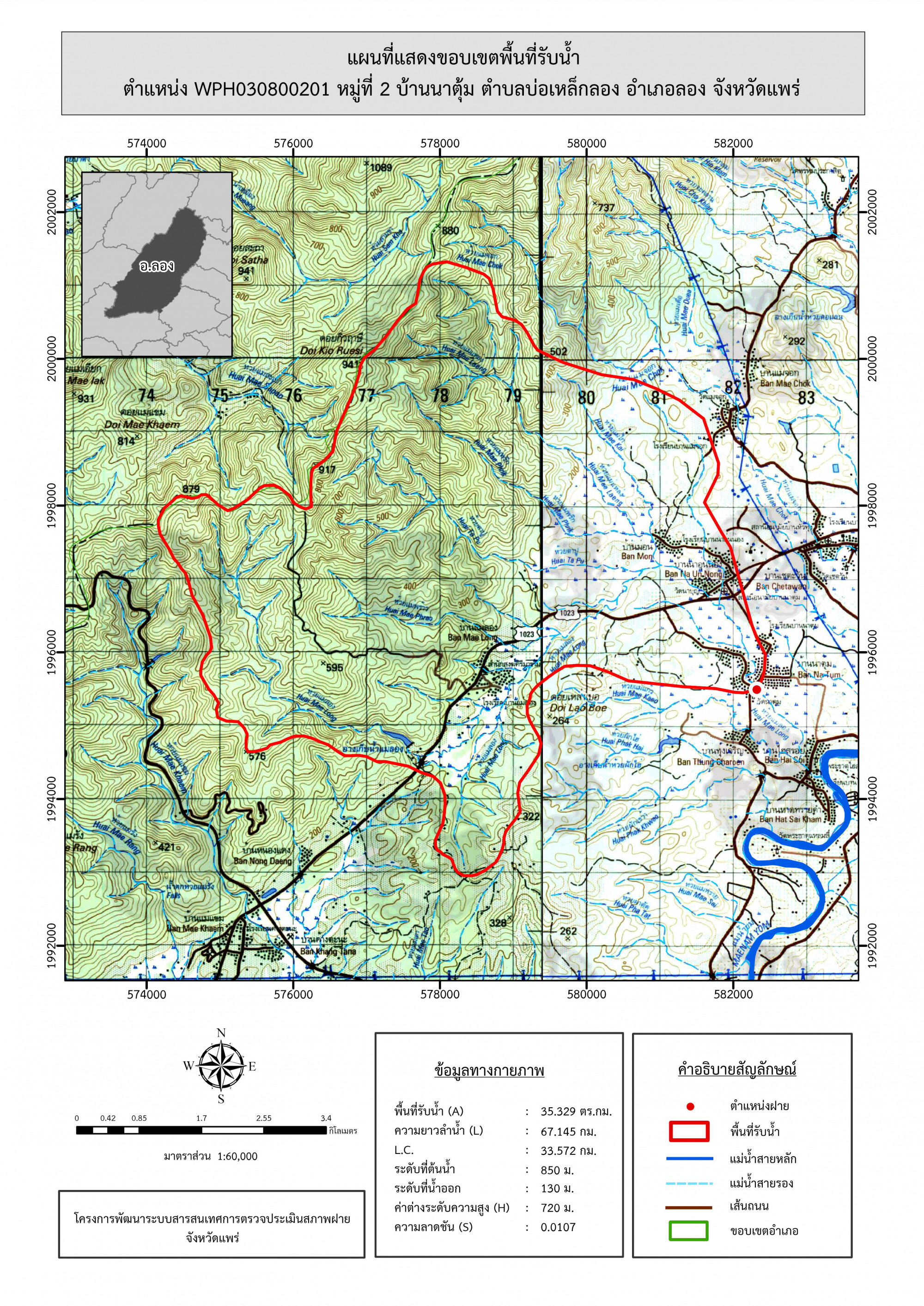รูปภาพแผนที่แสดงขอบเขตพื้นที่รับน้ำ