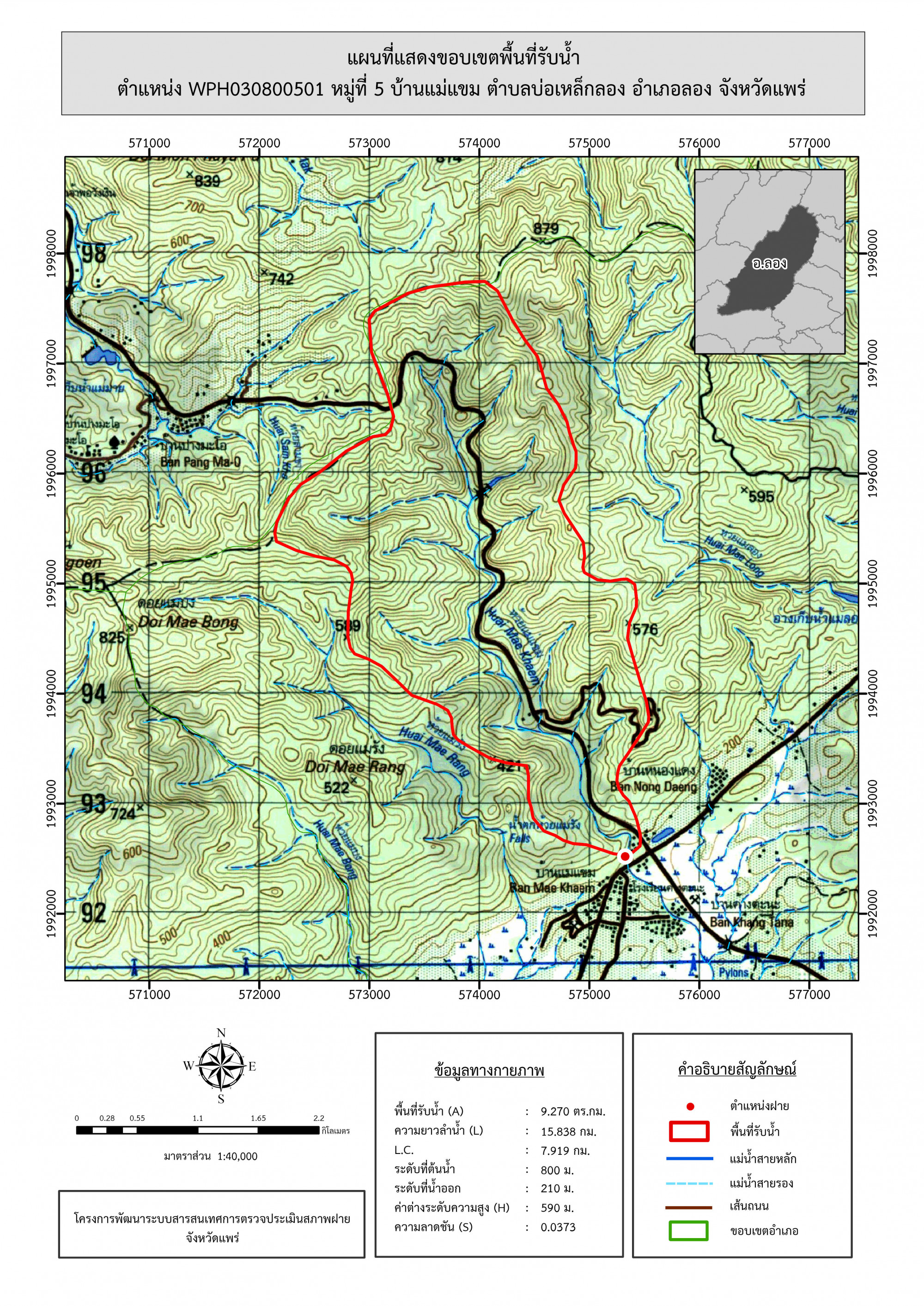 รูปภาพแผนที่แสดงขอบเขตพื้นที่รับน้ำ