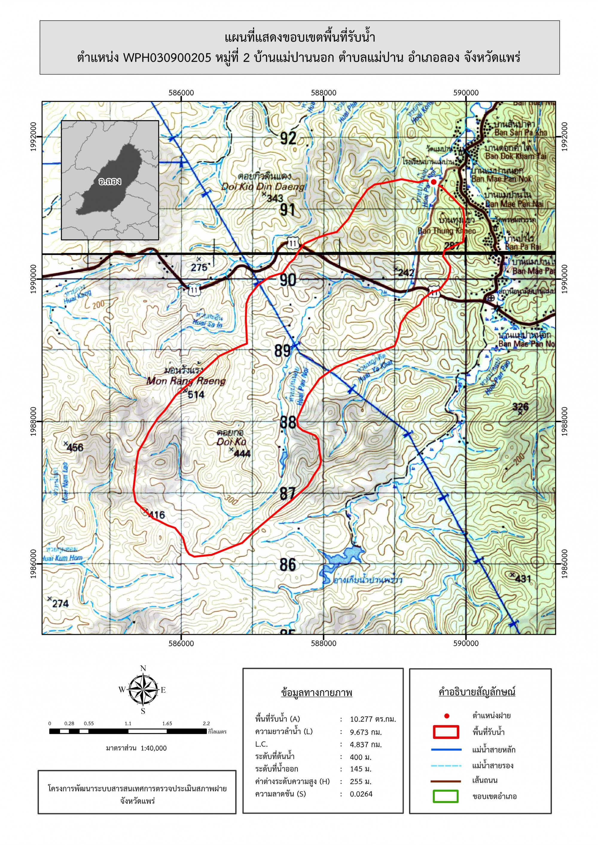 รูปภาพแผนที่แสดงขอบเขตพื้นที่รับน้ำ