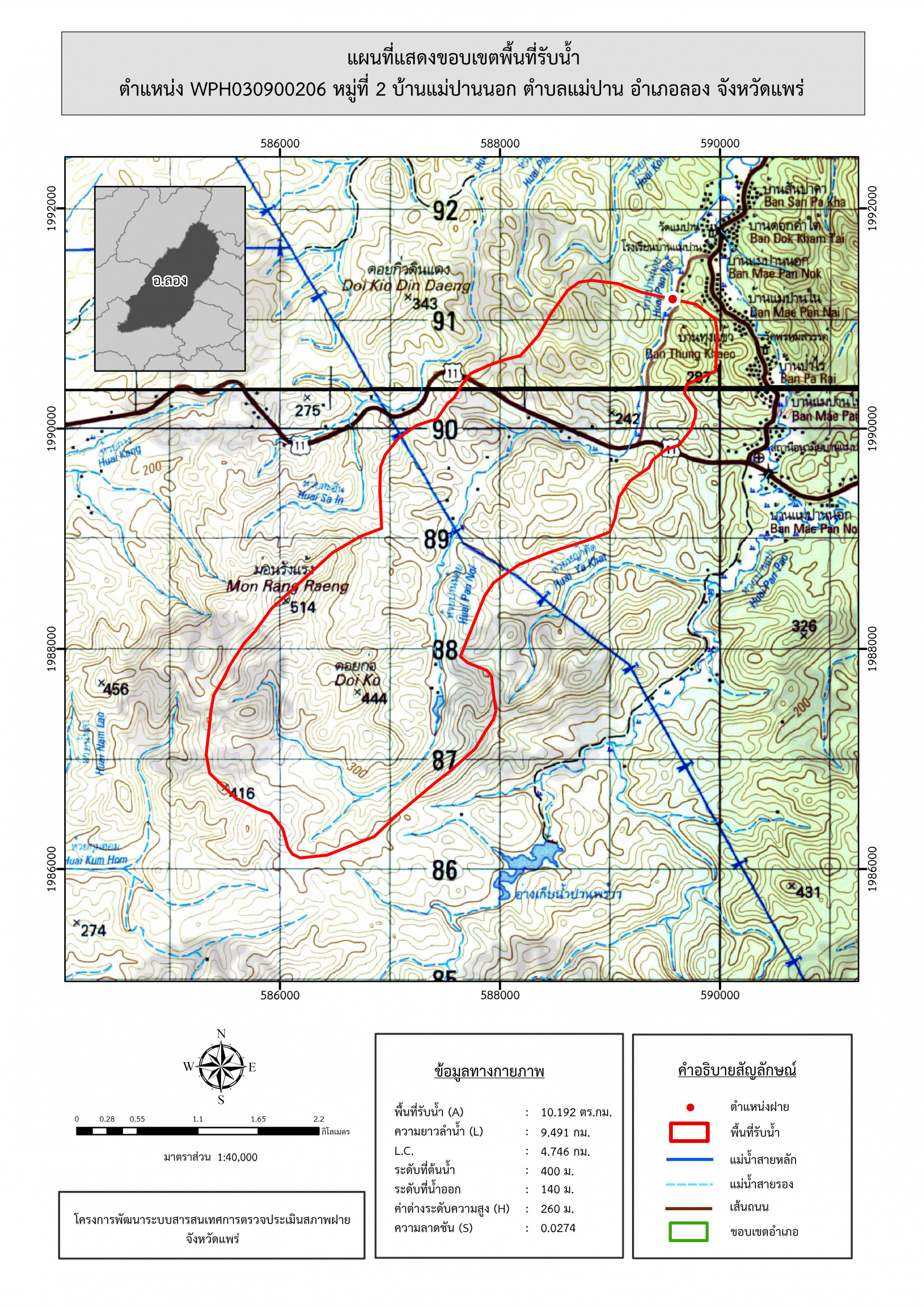 รูปภาพแผนที่แสดงขอบเขตพื้นที่รับน้ำ