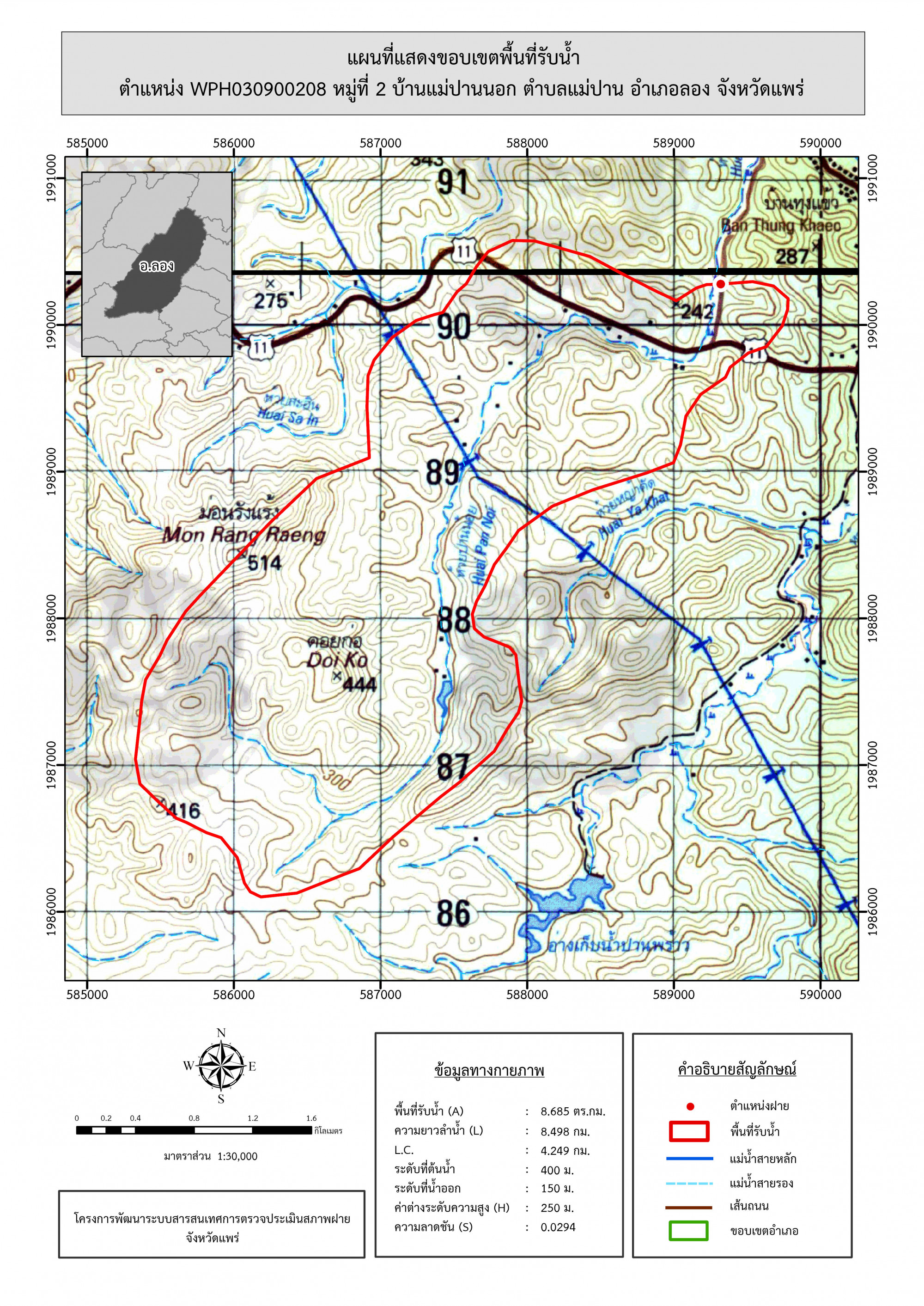 รูปภาพแผนที่แสดงขอบเขตพื้นที่รับน้ำ
