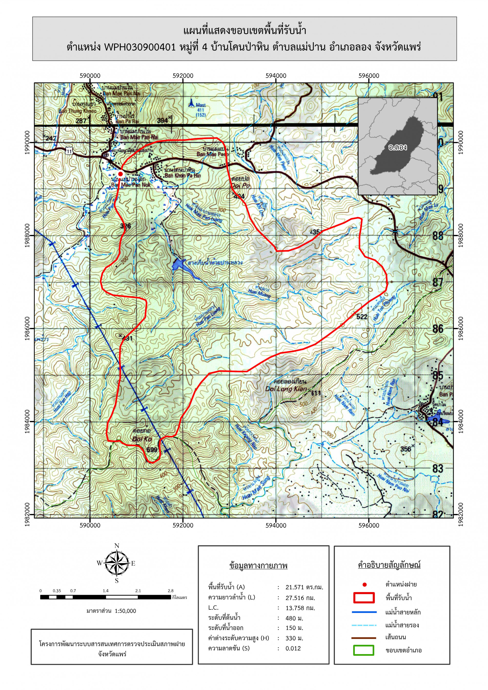 รูปภาพแผนที่แสดงขอบเขตพื้นที่รับน้ำ