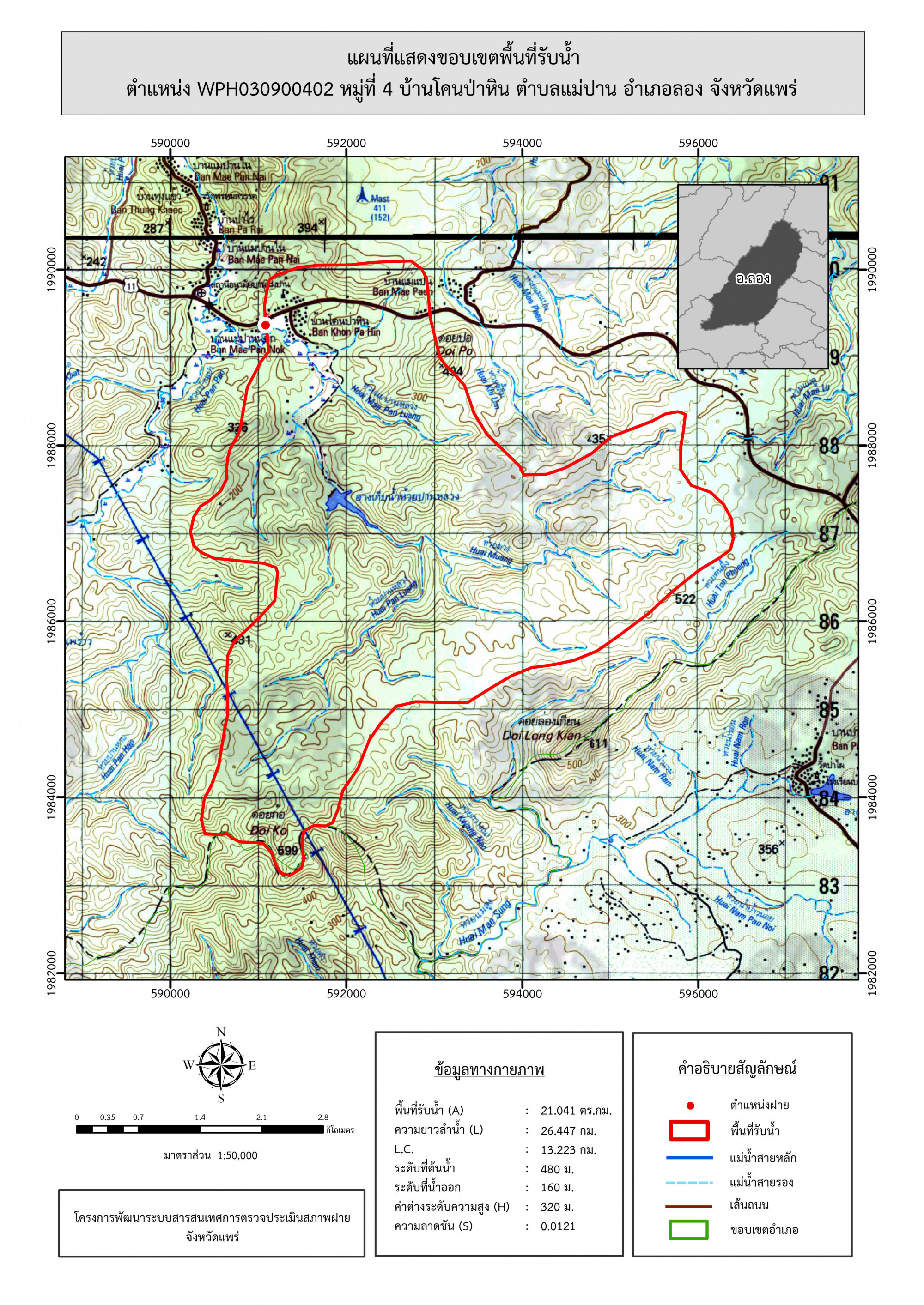 รูปภาพแผนที่แสดงขอบเขตพื้นที่รับน้ำ