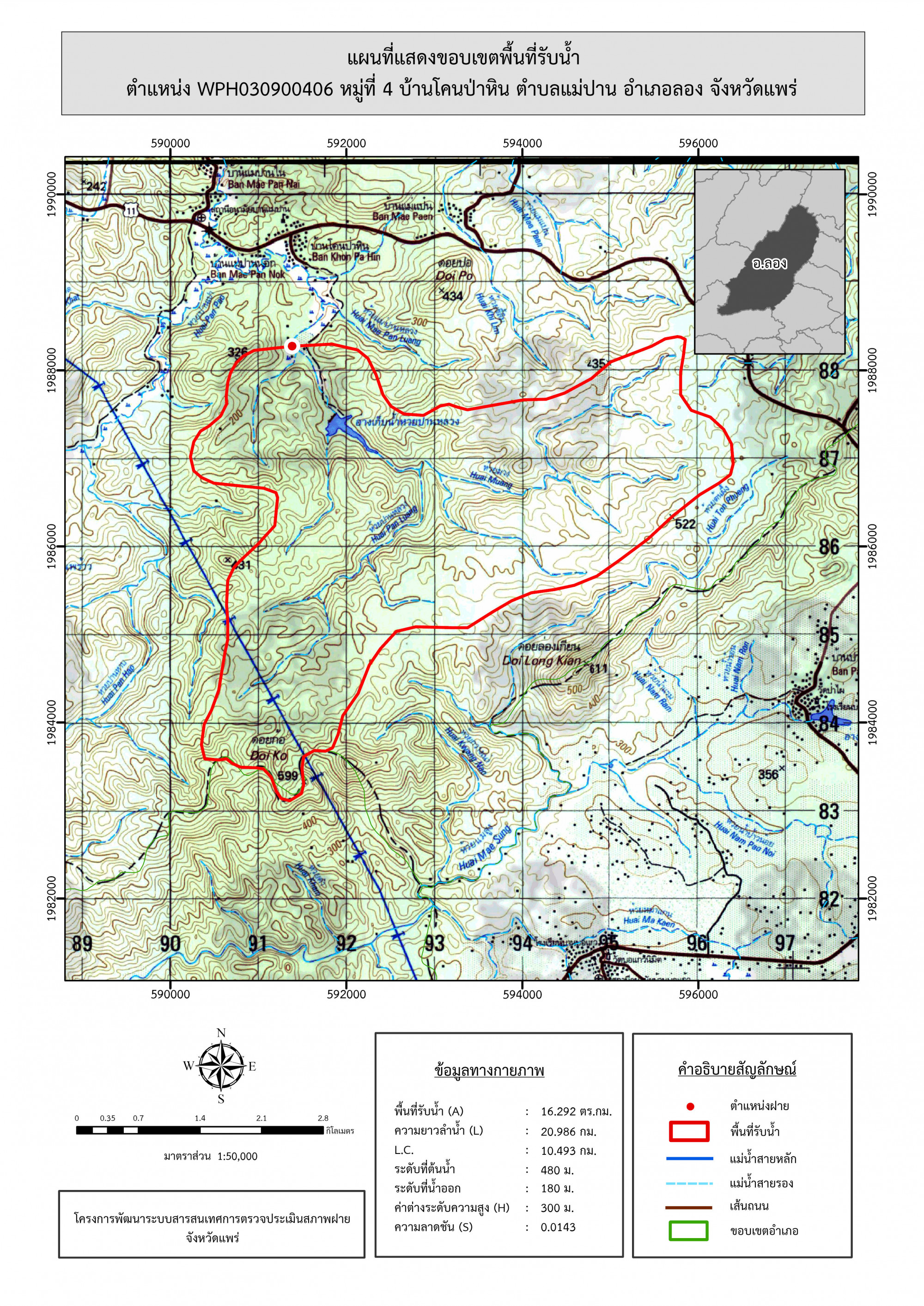 รูปภาพแผนที่แสดงขอบเขตพื้นที่รับน้ำ