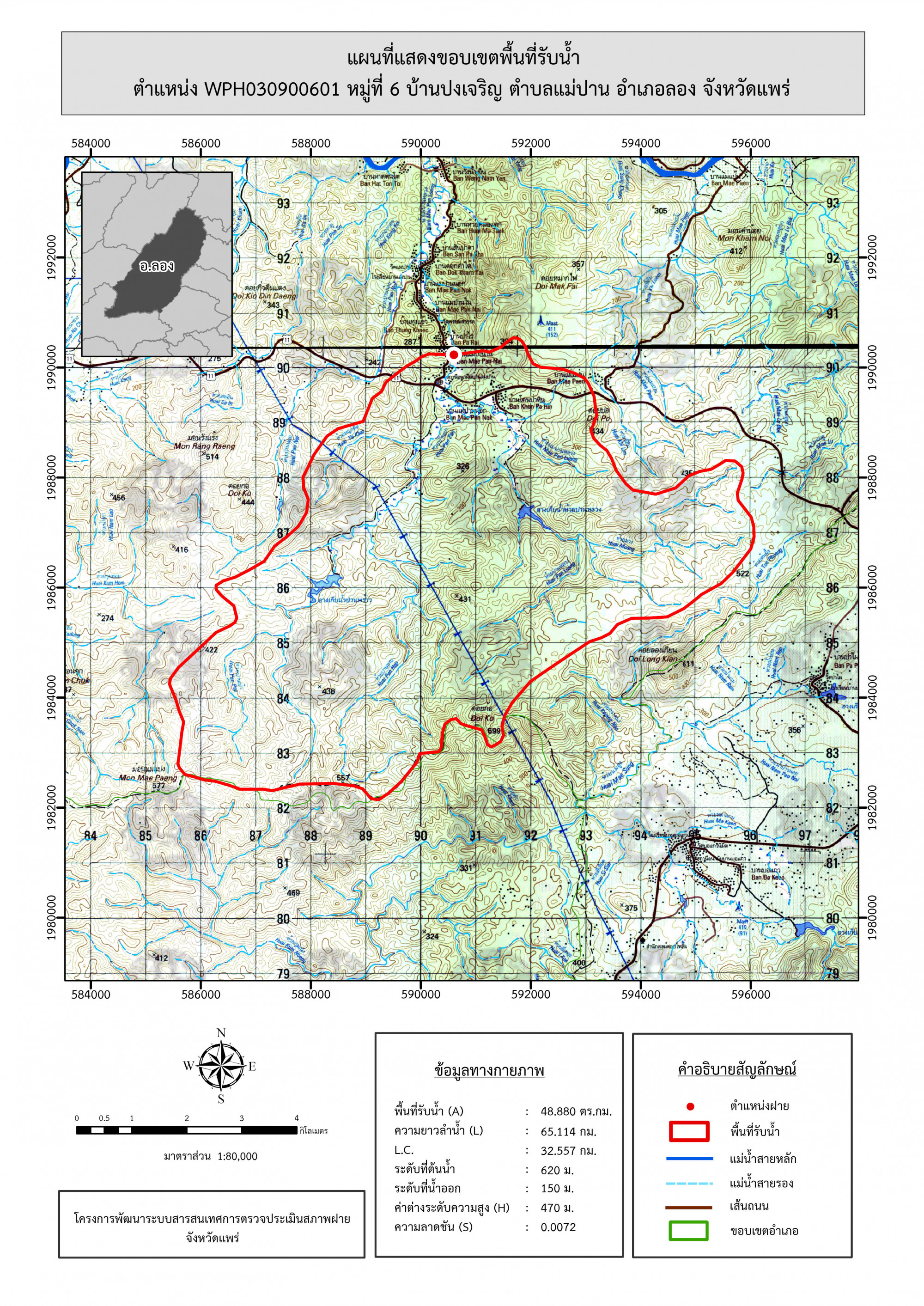 รูปภาพแผนที่แสดงขอบเขตพื้นที่รับน้ำ