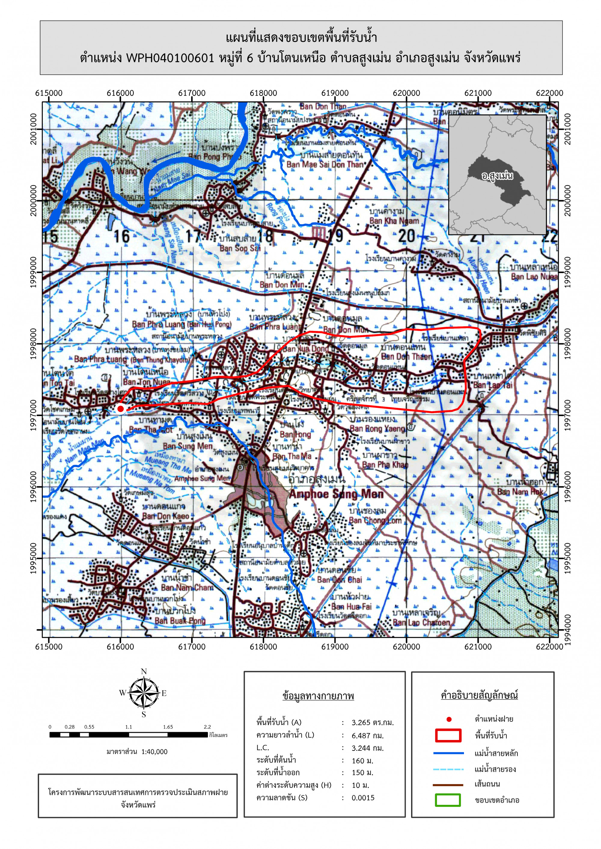 รูปภาพแผนที่แสดงขอบเขตพื้นที่รับน้ำ