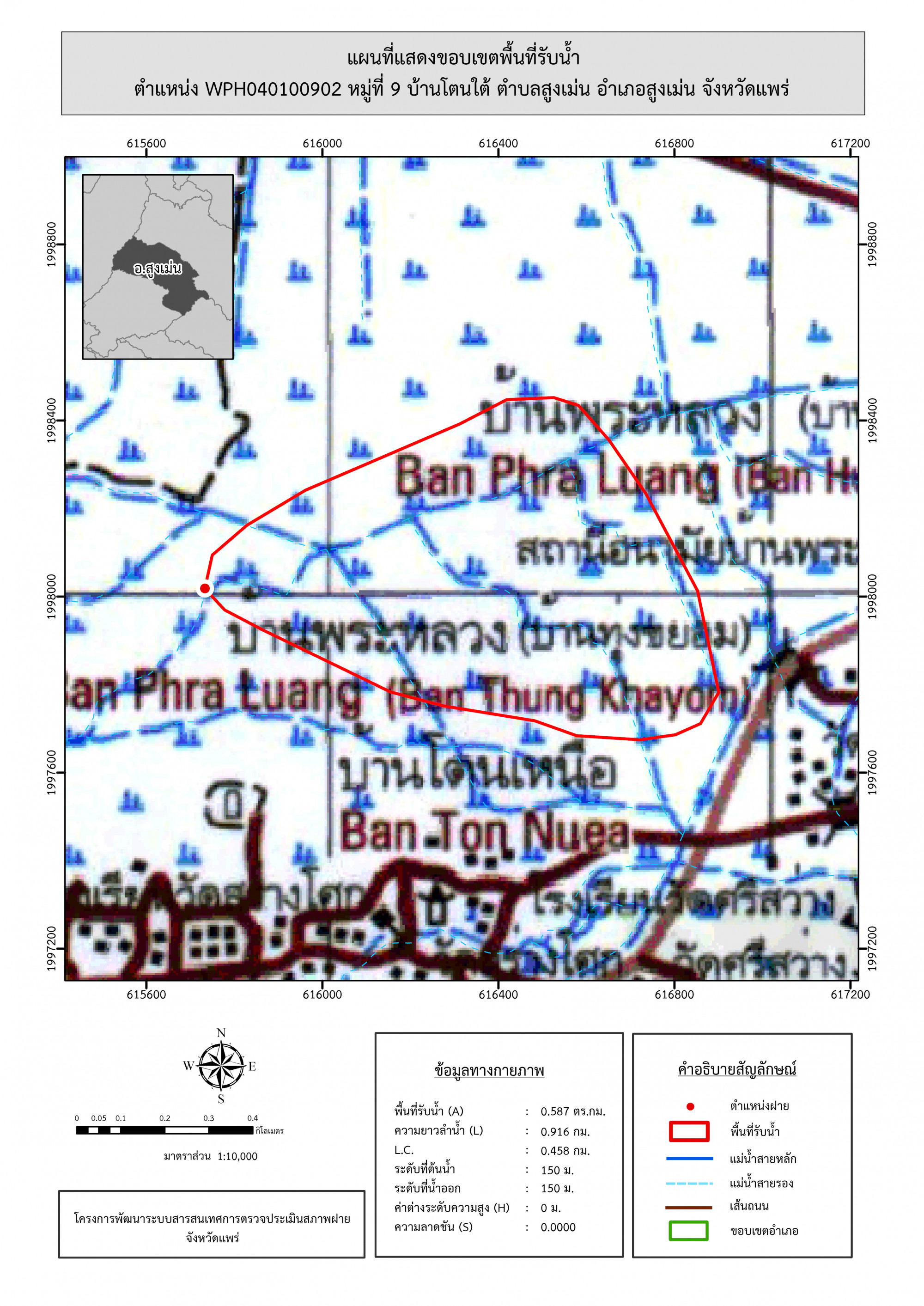 รูปภาพแผนที่แสดงขอบเขตพื้นที่รับน้ำ