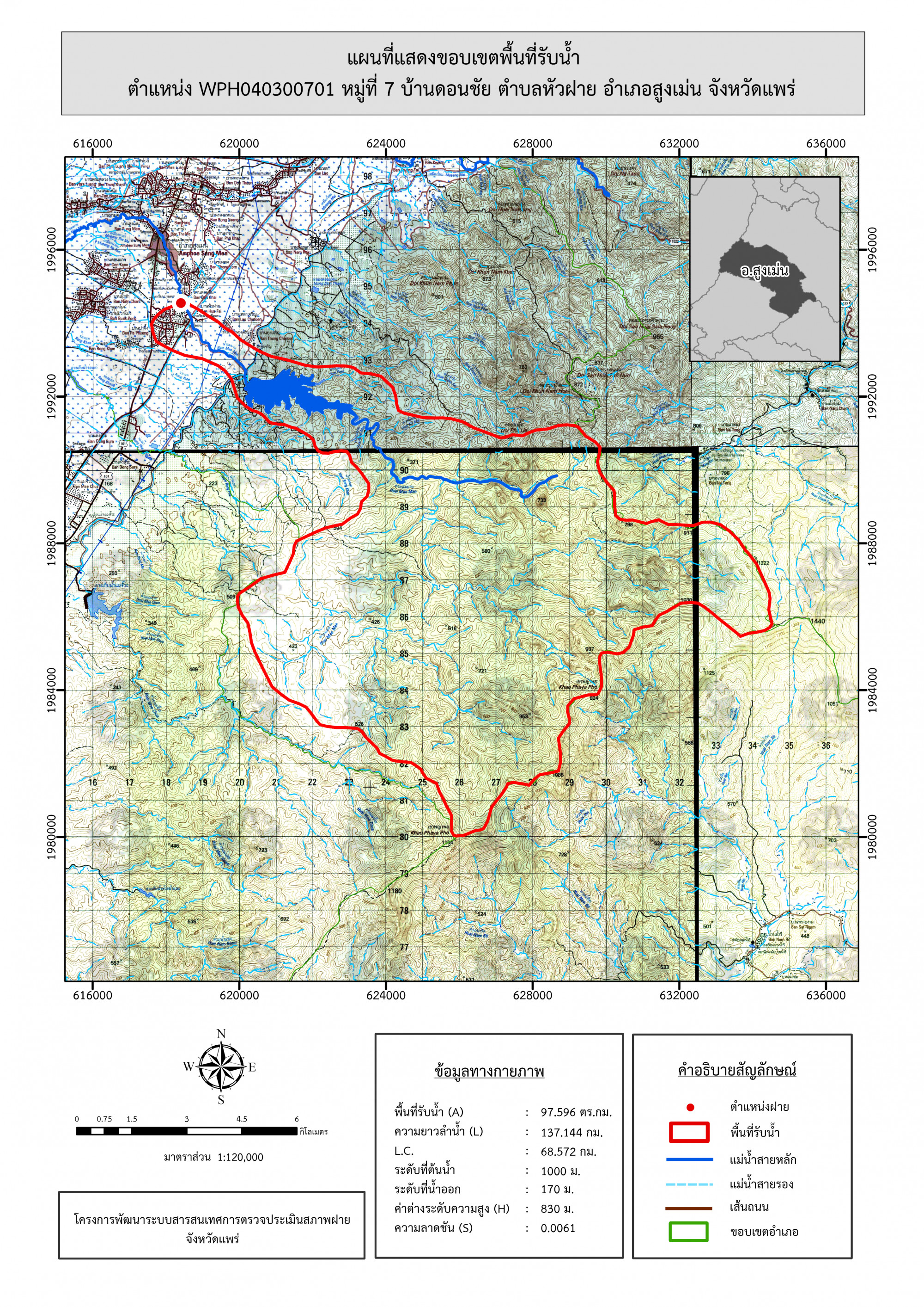 รูปภาพแผนที่แสดงขอบเขตพื้นที่รับน้ำ