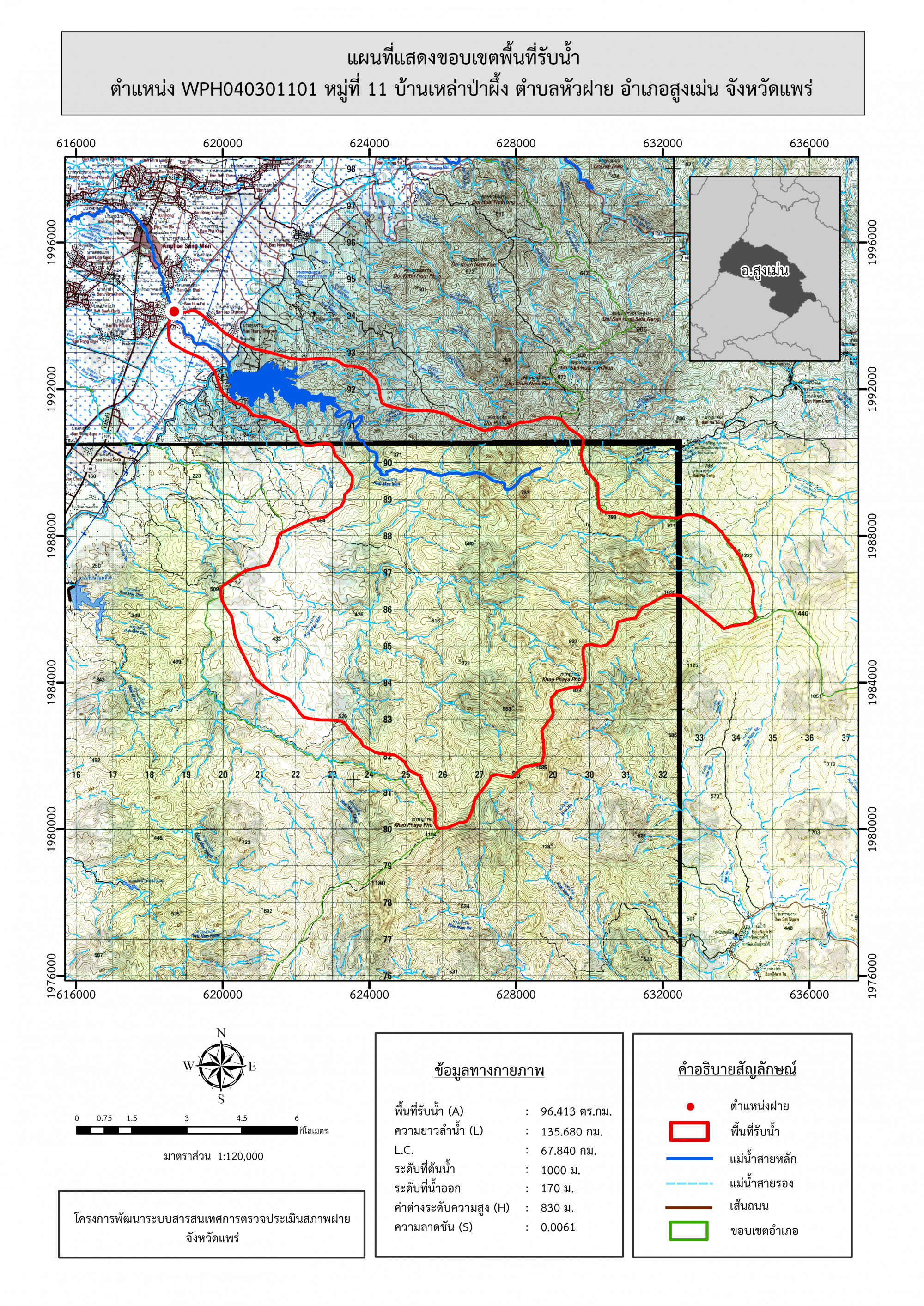 รูปภาพแผนที่แสดงขอบเขตพื้นที่รับน้ำ