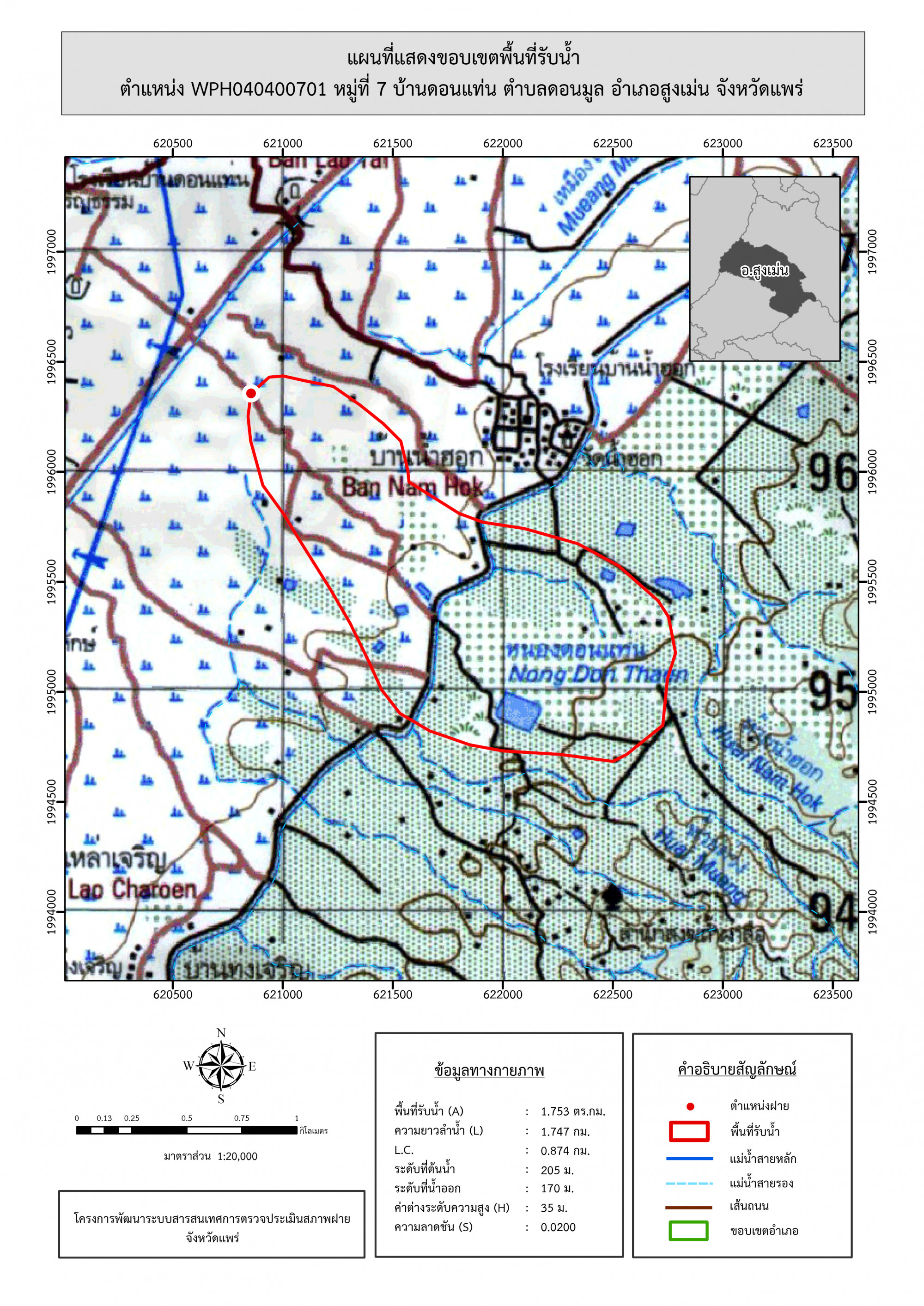 รูปภาพแผนที่แสดงขอบเขตพื้นที่รับน้ำ