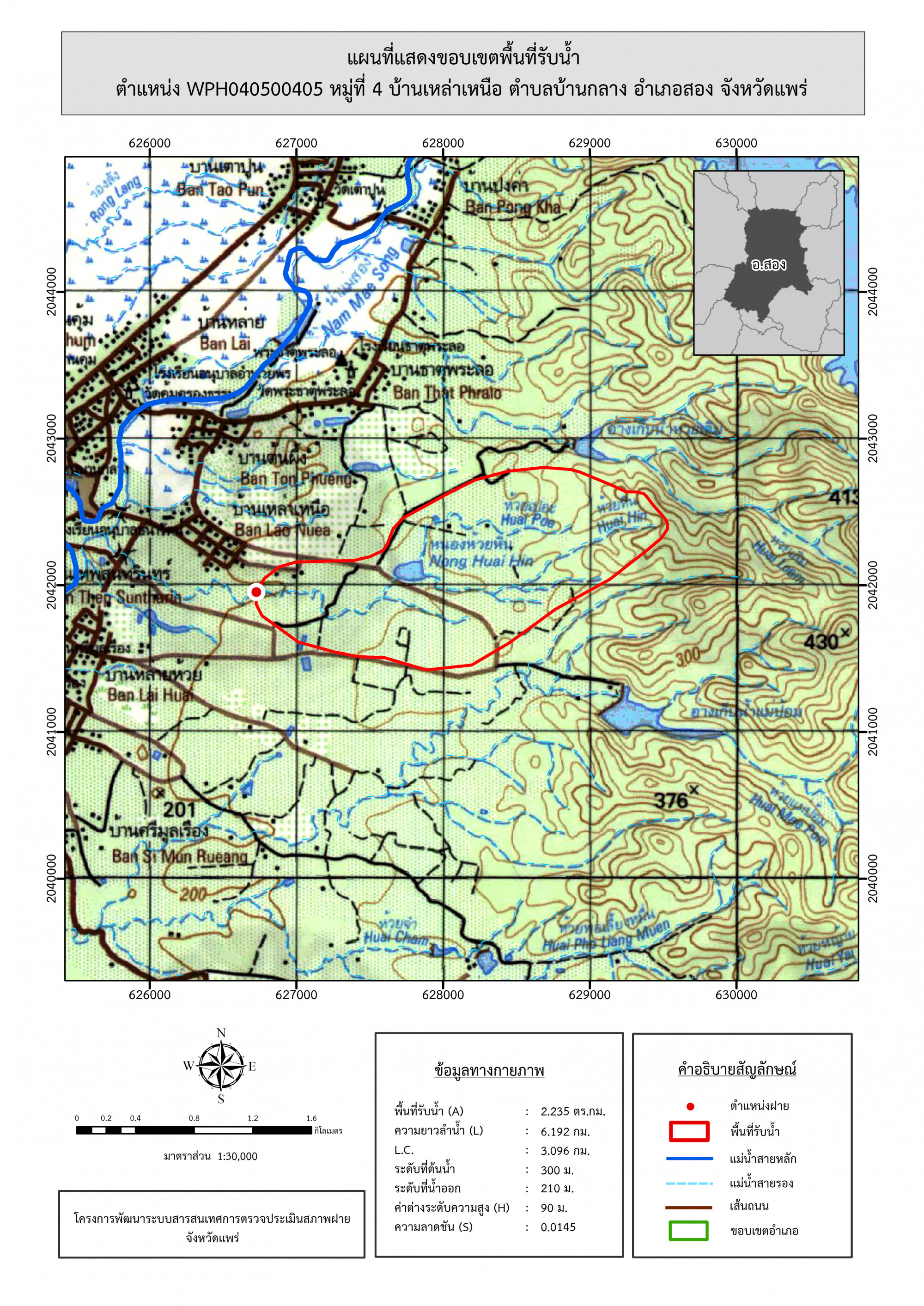 รูปภาพแผนที่แสดงขอบเขตพื้นที่รับน้ำ