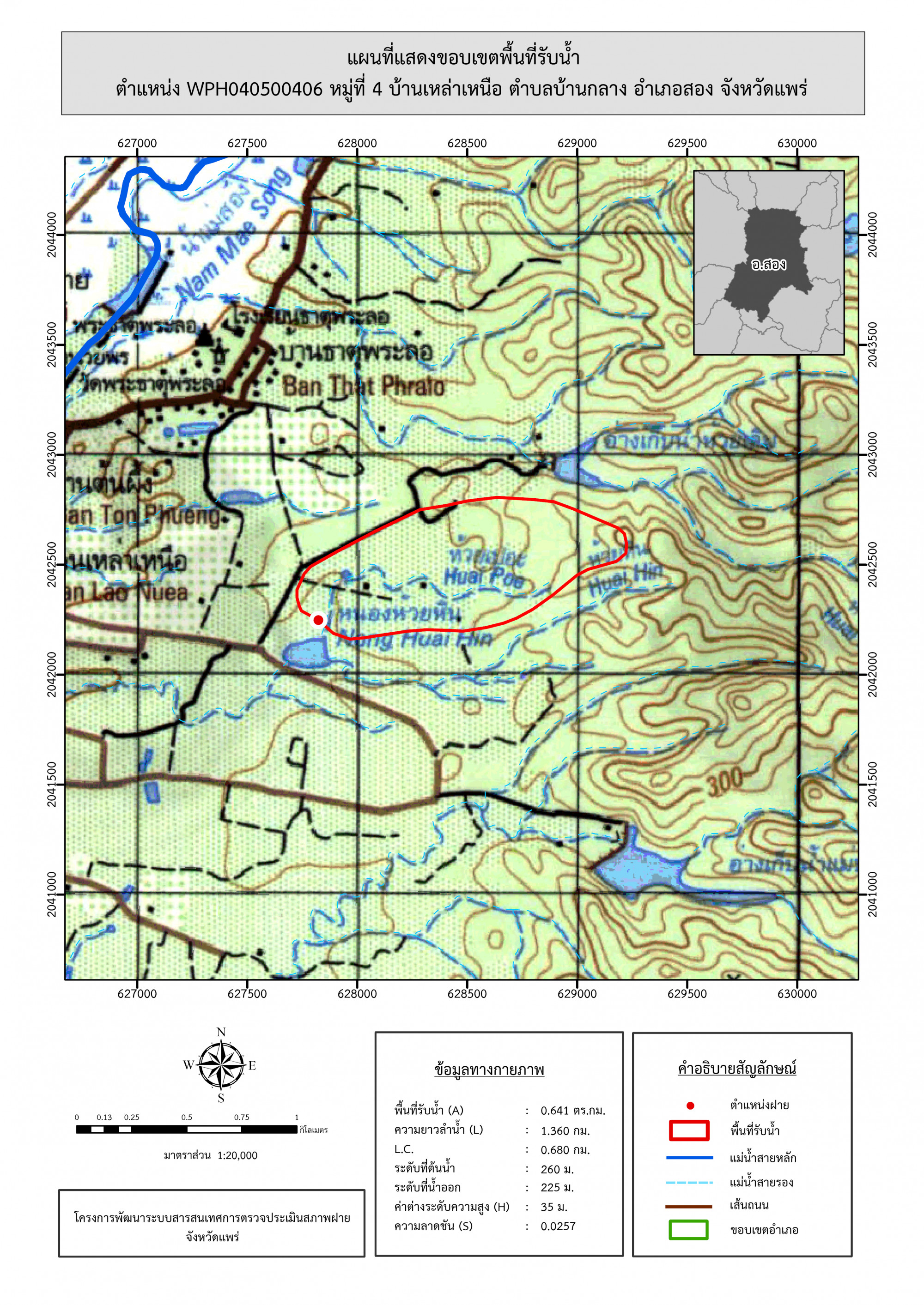 รูปภาพแผนที่แสดงขอบเขตพื้นที่รับน้ำ