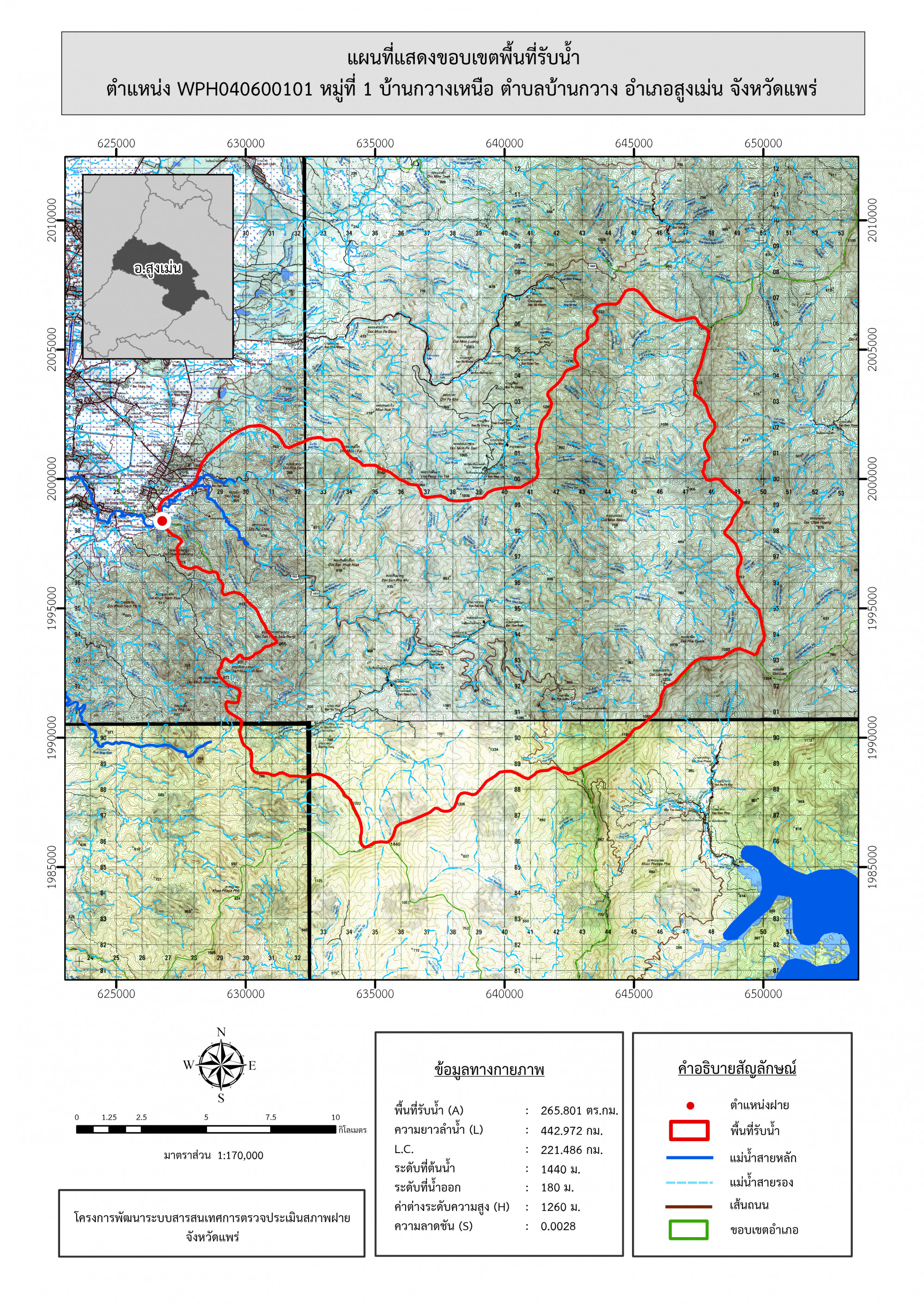 รูปภาพแผนที่แสดงขอบเขตพื้นที่รับน้ำ