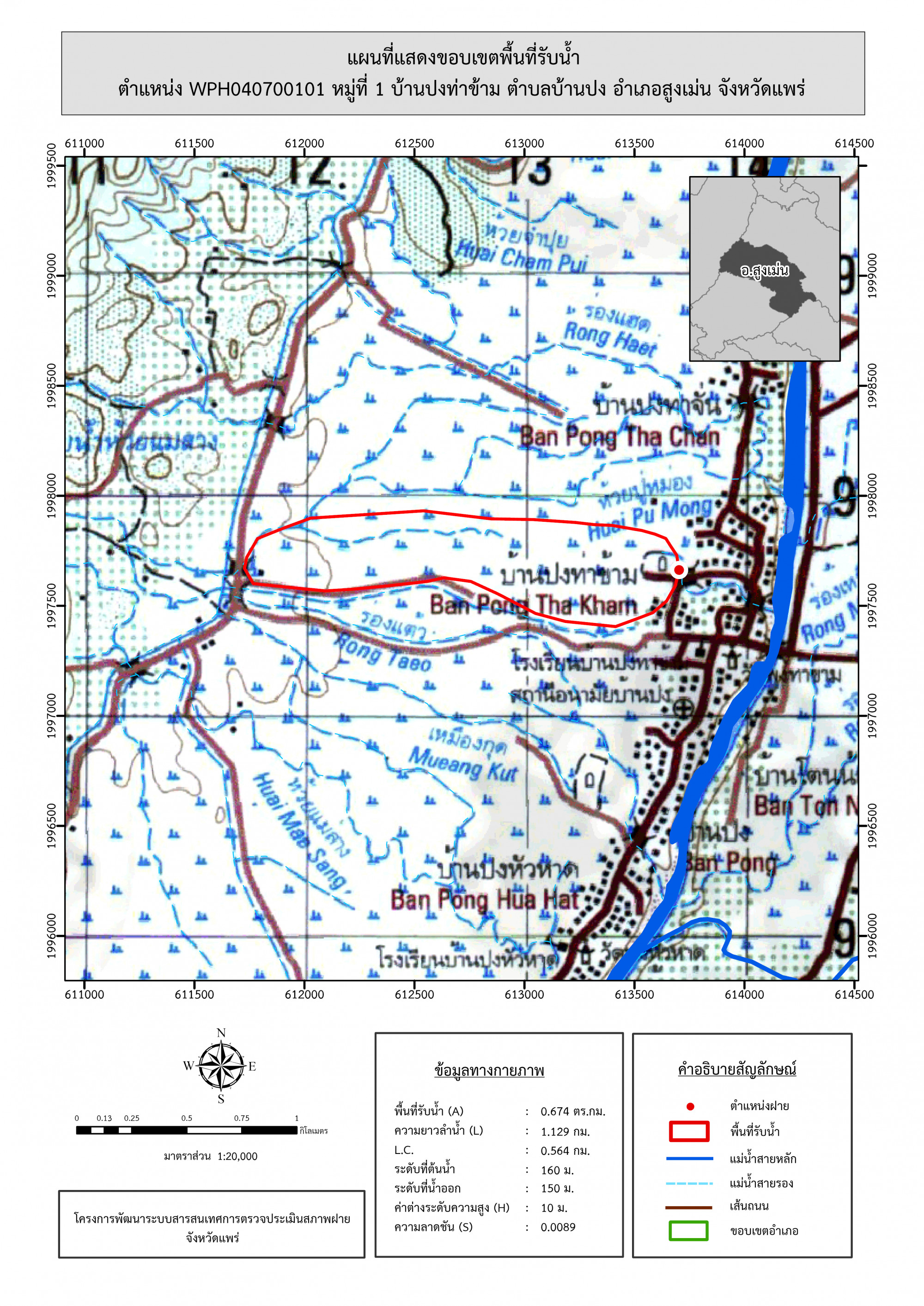 รูปภาพแผนที่แสดงขอบเขตพื้นที่รับน้ำ