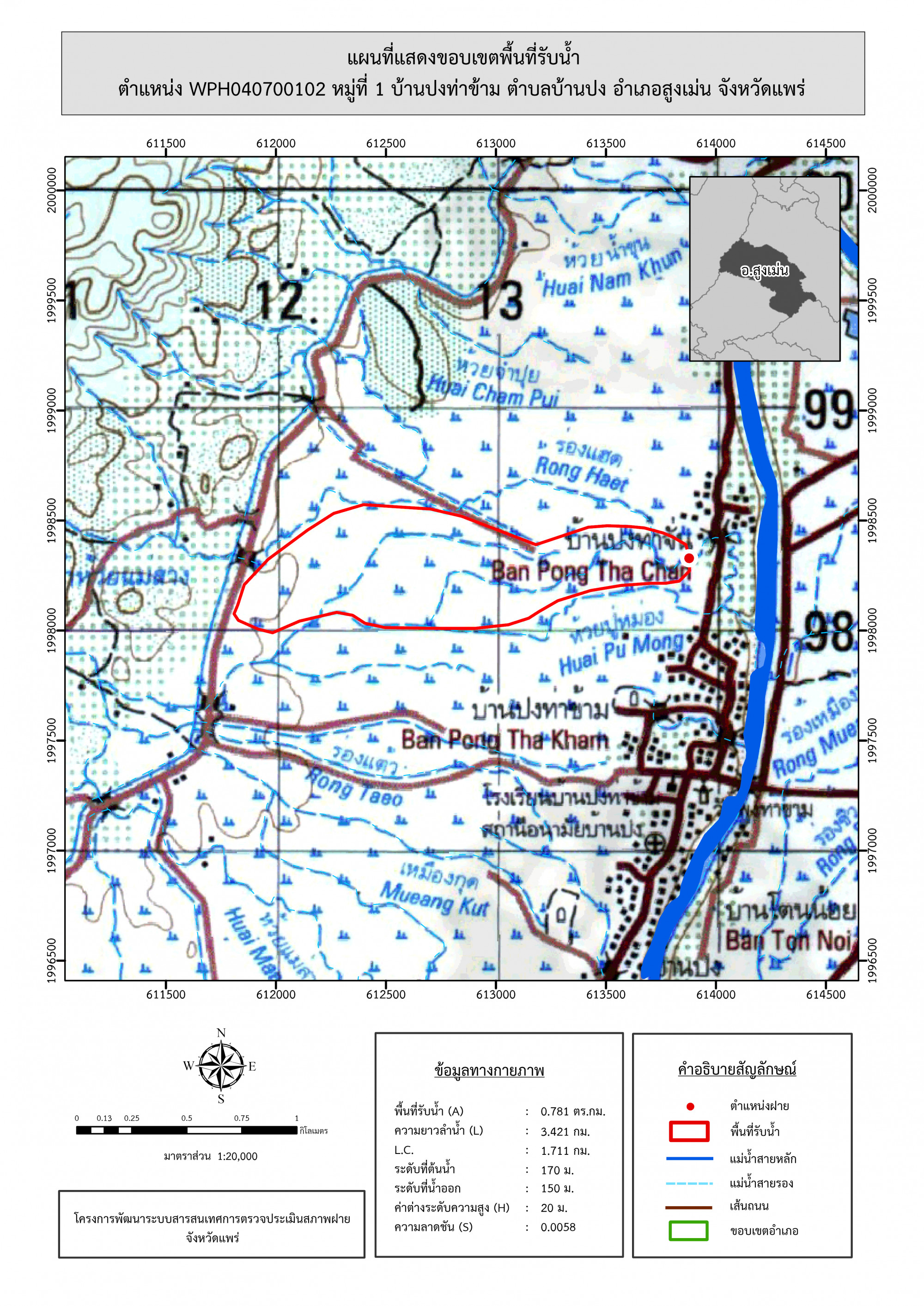 รูปภาพแผนที่แสดงขอบเขตพื้นที่รับน้ำ