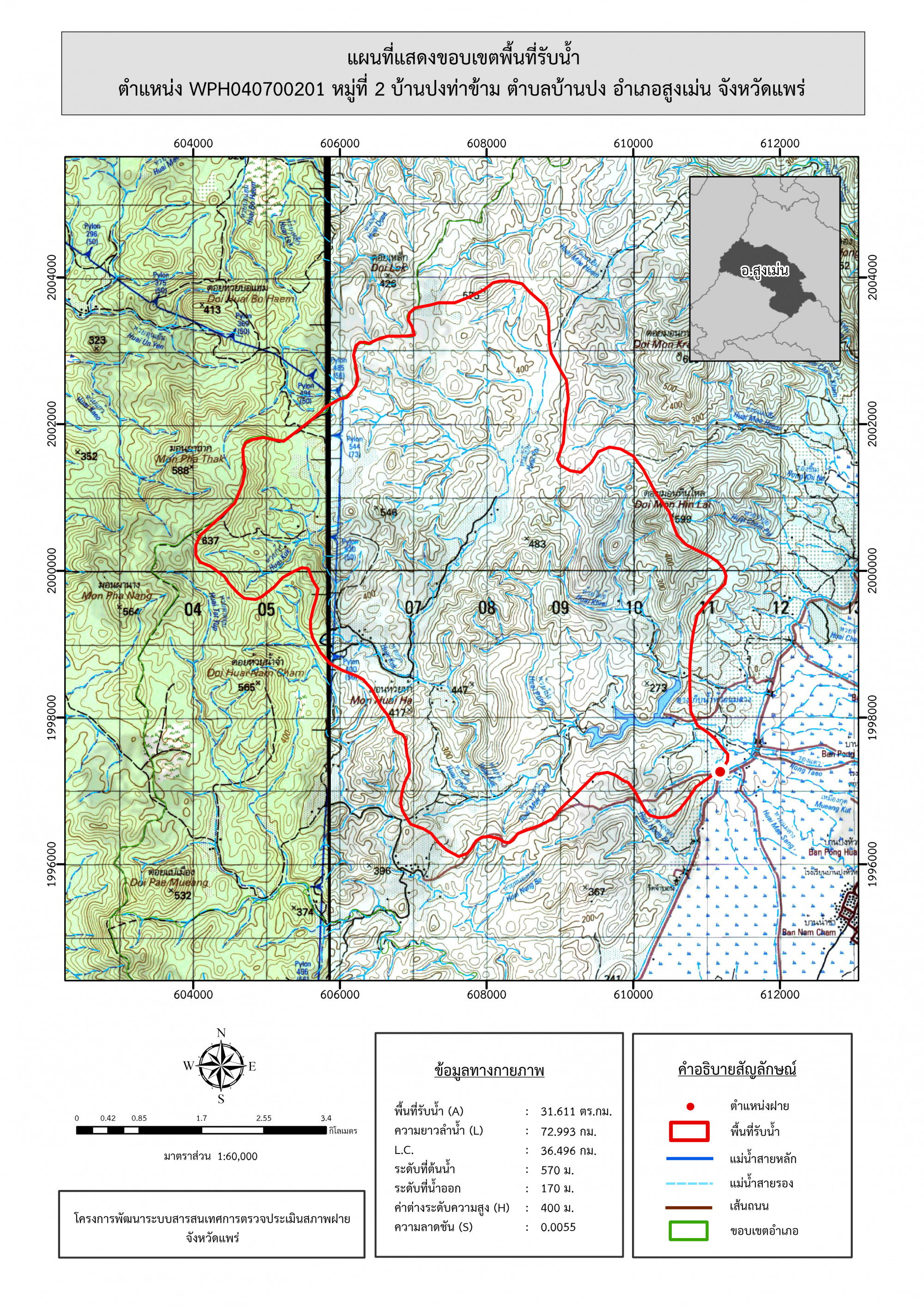 รูปภาพแผนที่แสดงขอบเขตพื้นที่รับน้ำ