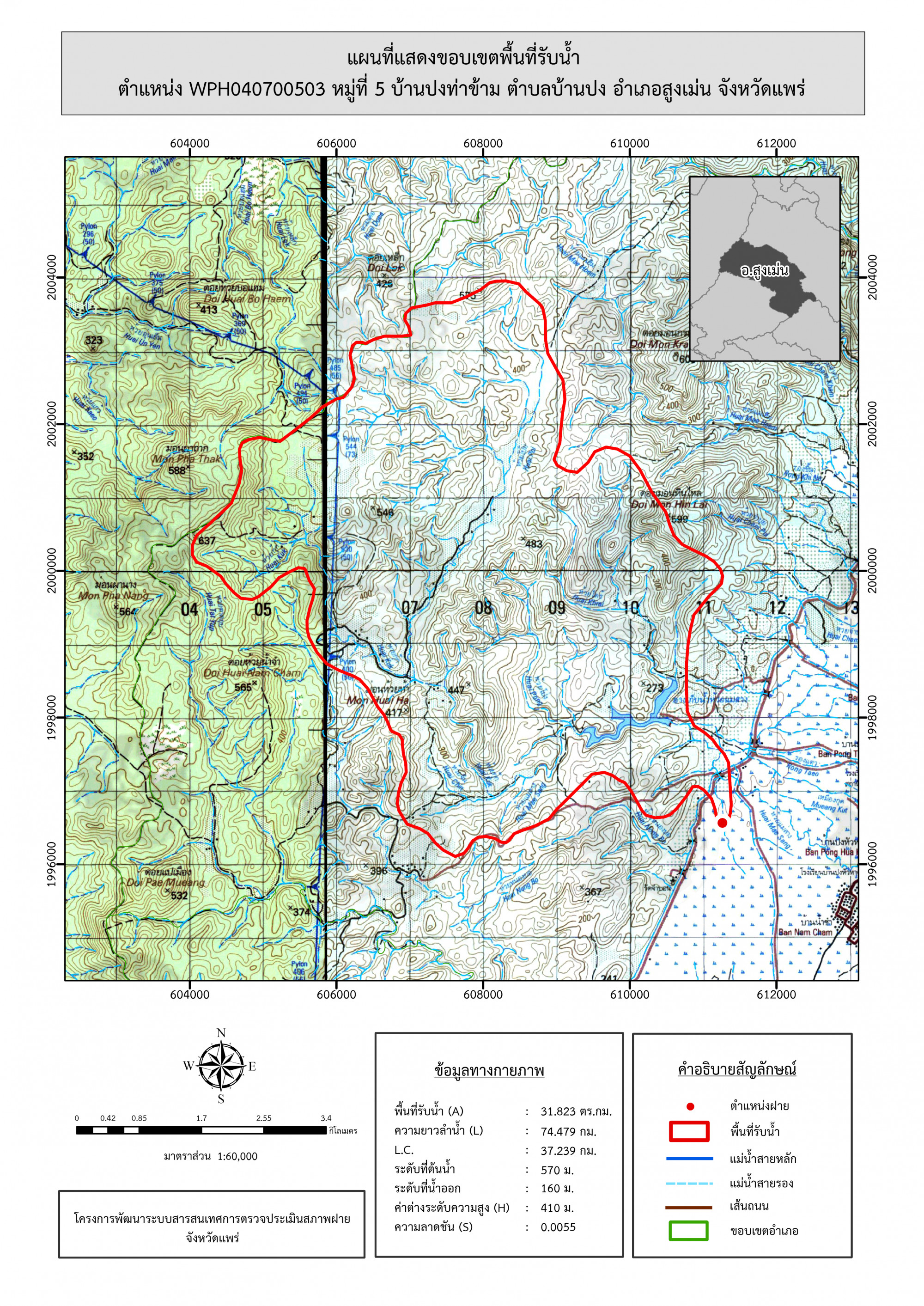 รูปภาพแผนที่แสดงขอบเขตพื้นที่รับน้ำ