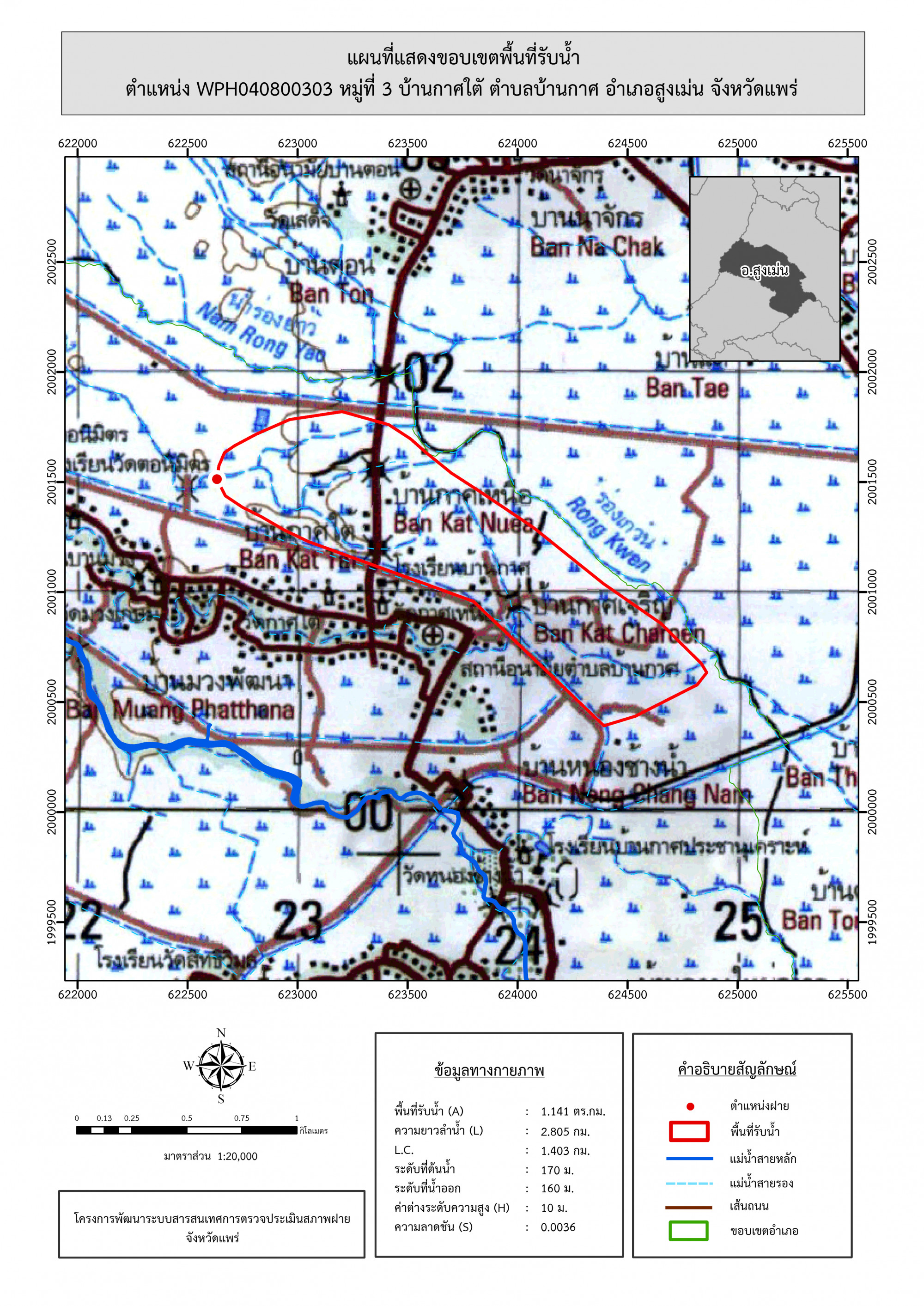 รูปภาพแผนที่แสดงขอบเขตพื้นที่รับน้ำ