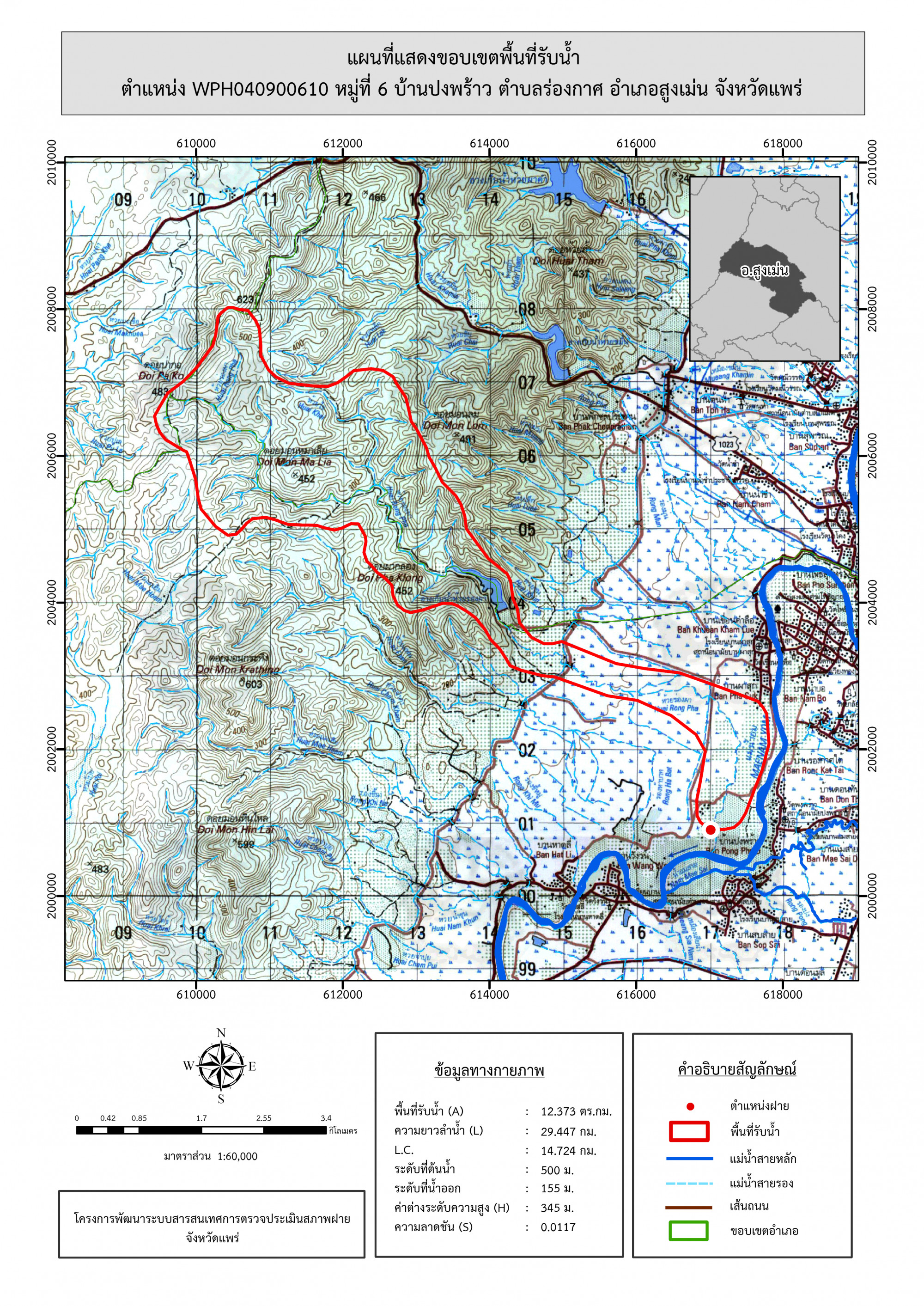 รูปภาพแผนที่แสดงขอบเขตพื้นที่รับน้ำ
