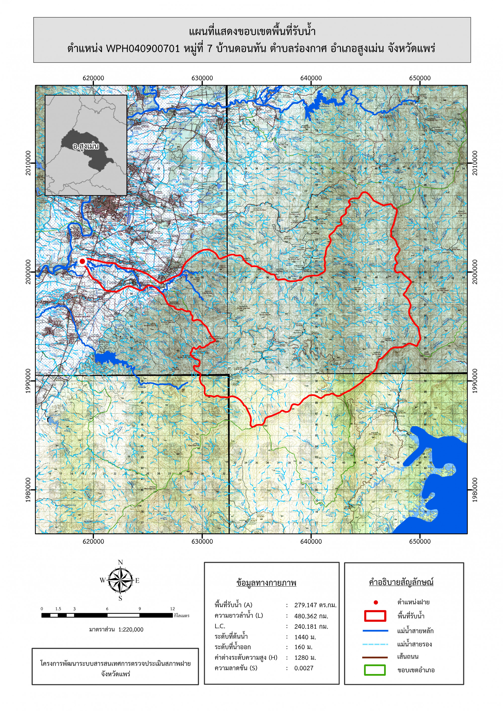 รูปภาพแผนที่แสดงขอบเขตพื้นที่รับน้ำ