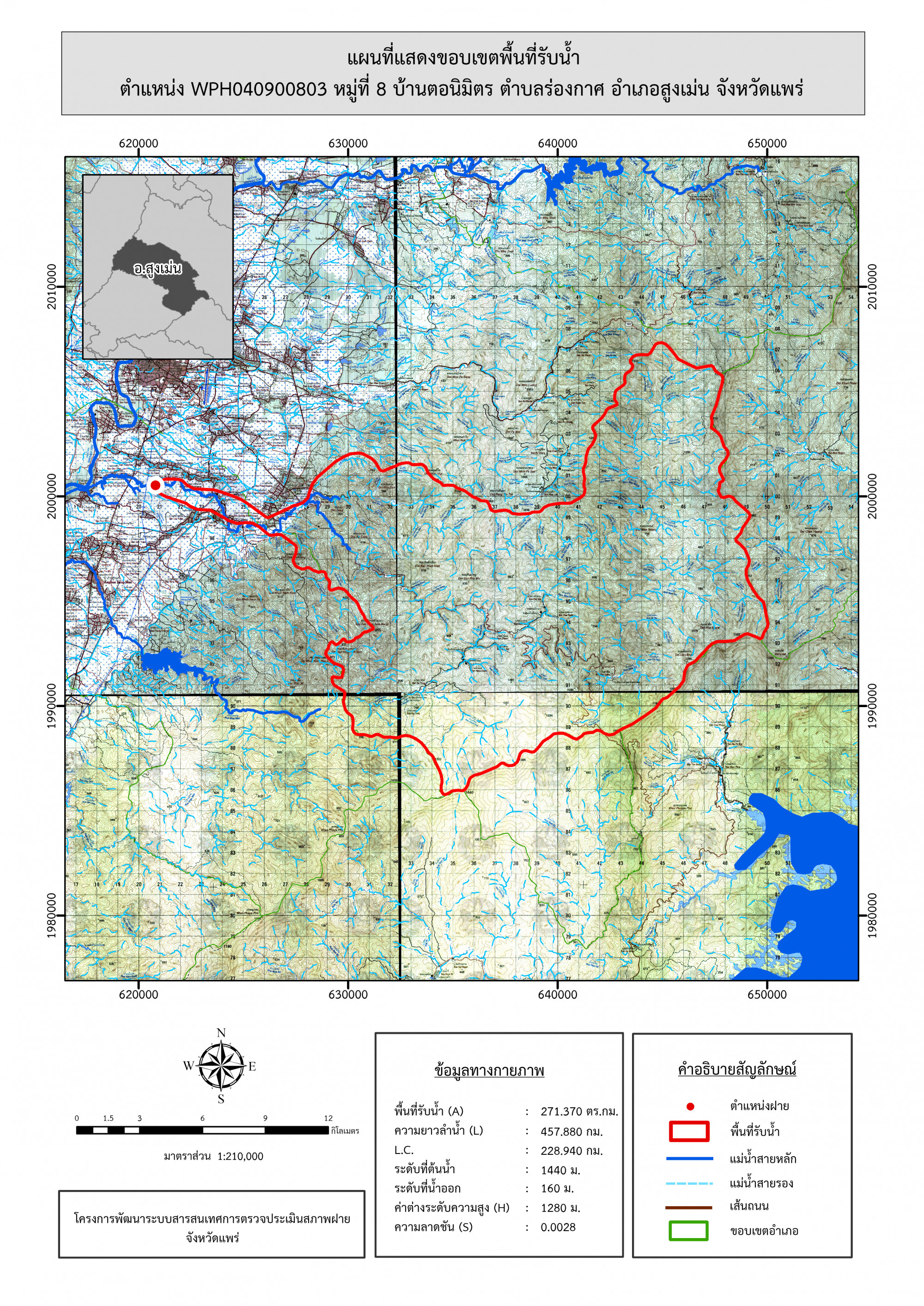 รูปภาพแผนที่แสดงขอบเขตพื้นที่รับน้ำ