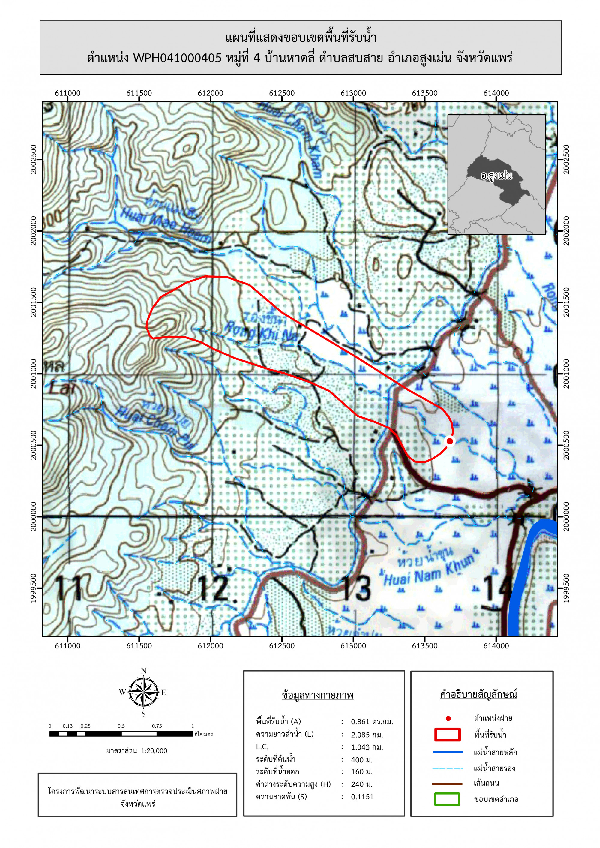 รูปภาพแผนที่แสดงขอบเขตพื้นที่รับน้ำ