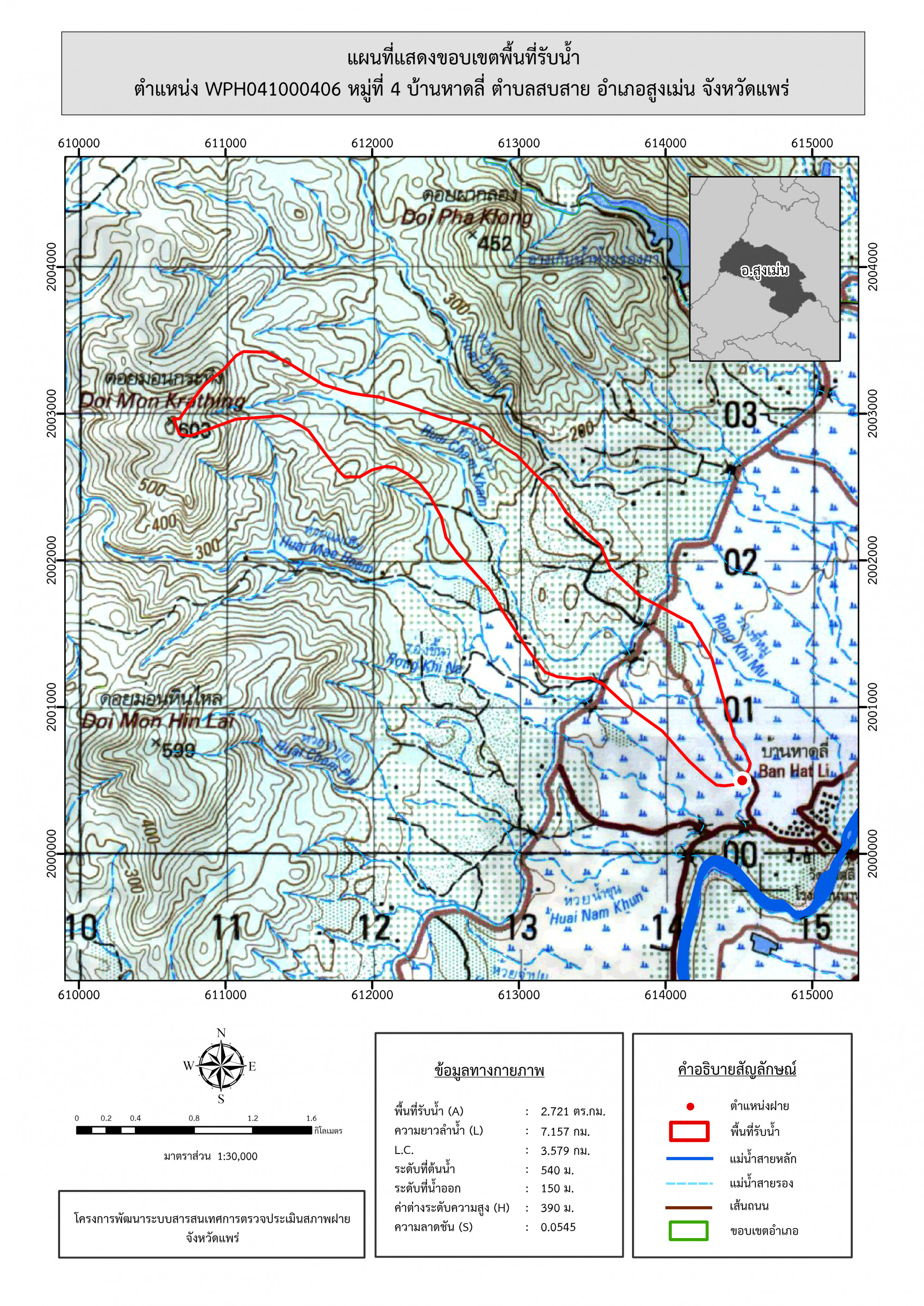 รูปภาพแผนที่แสดงขอบเขตพื้นที่รับน้ำ