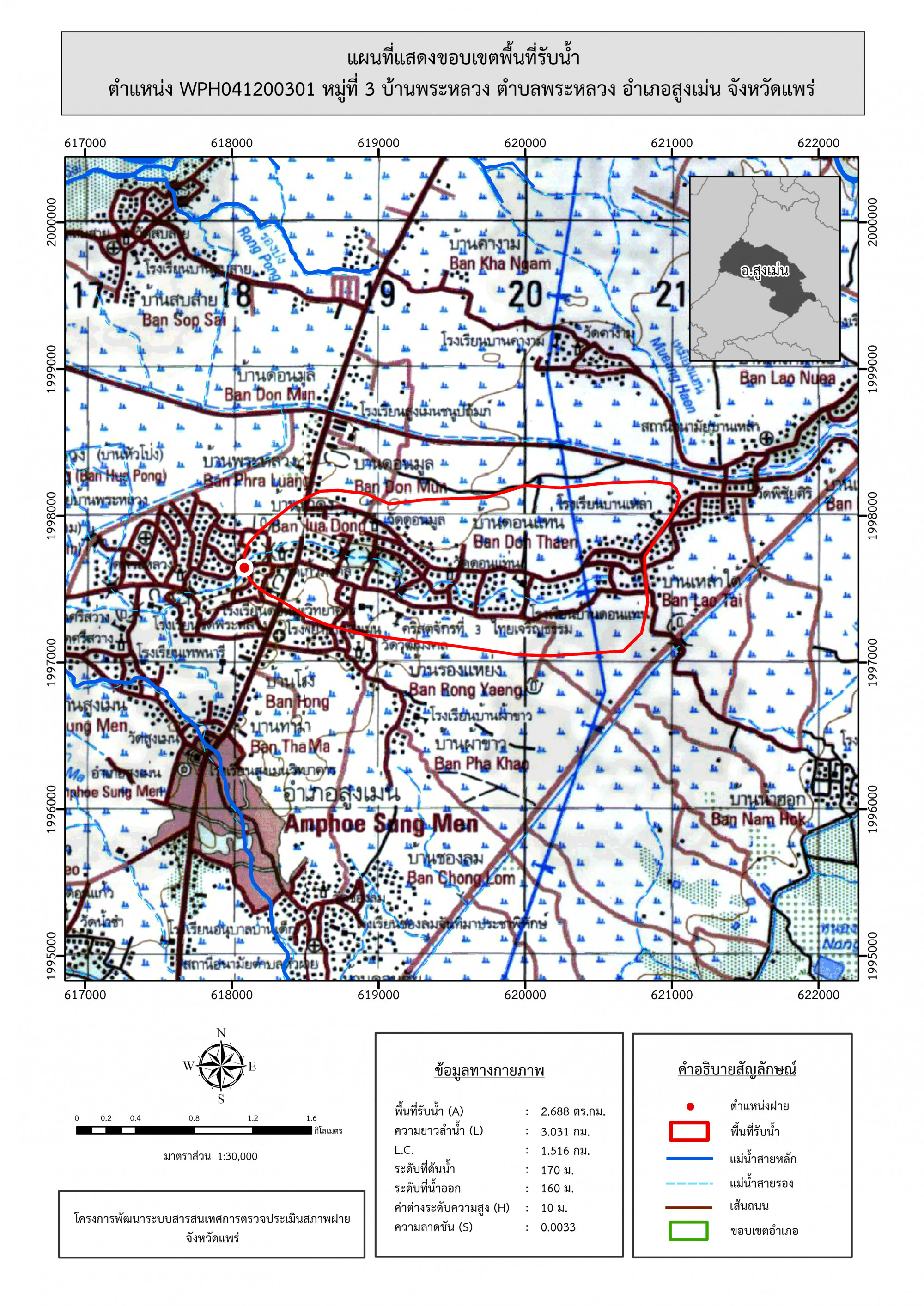 รูปภาพแผนที่แสดงขอบเขตพื้นที่รับน้ำ
