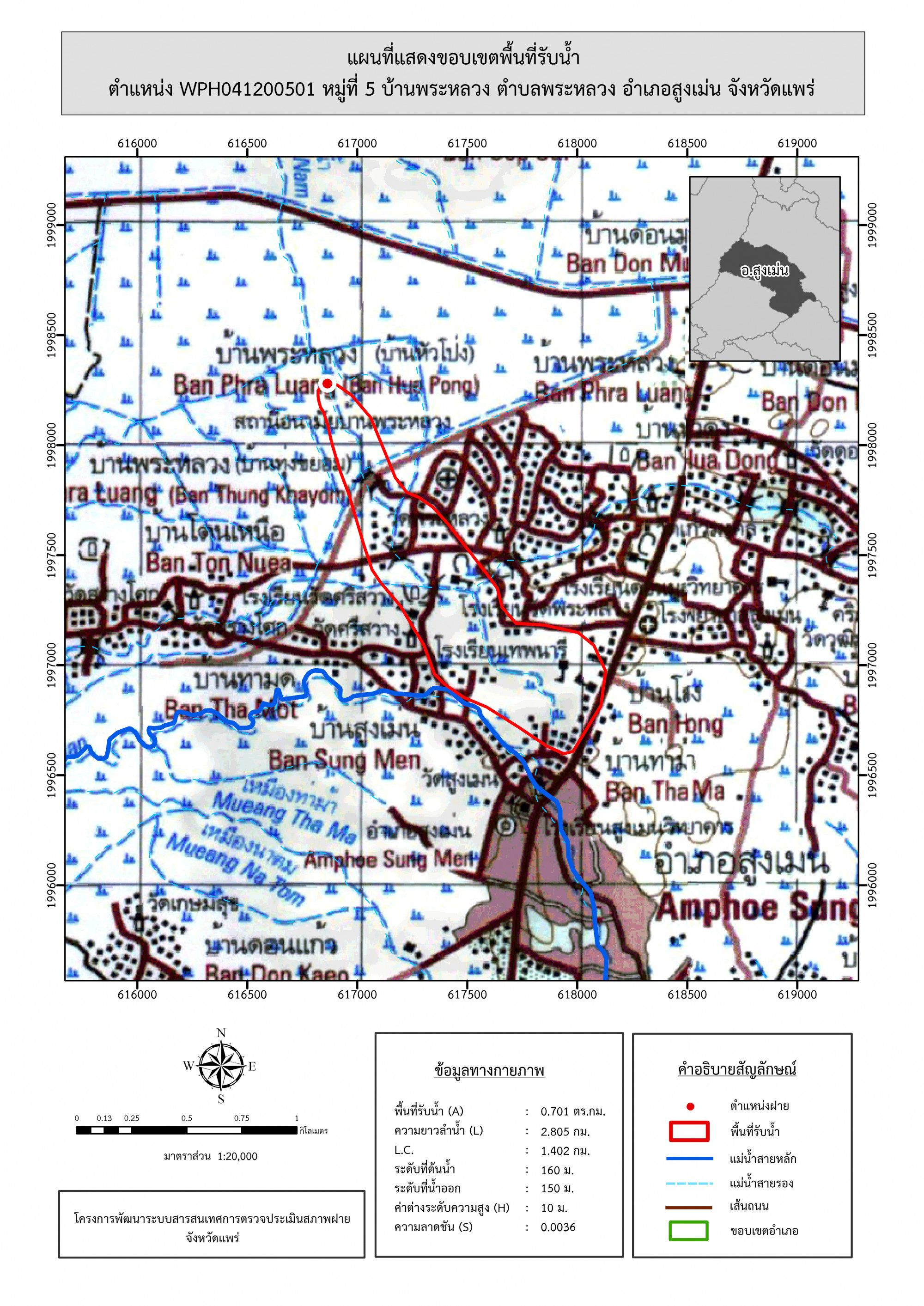 รูปภาพแผนที่แสดงขอบเขตพื้นที่รับน้ำ
