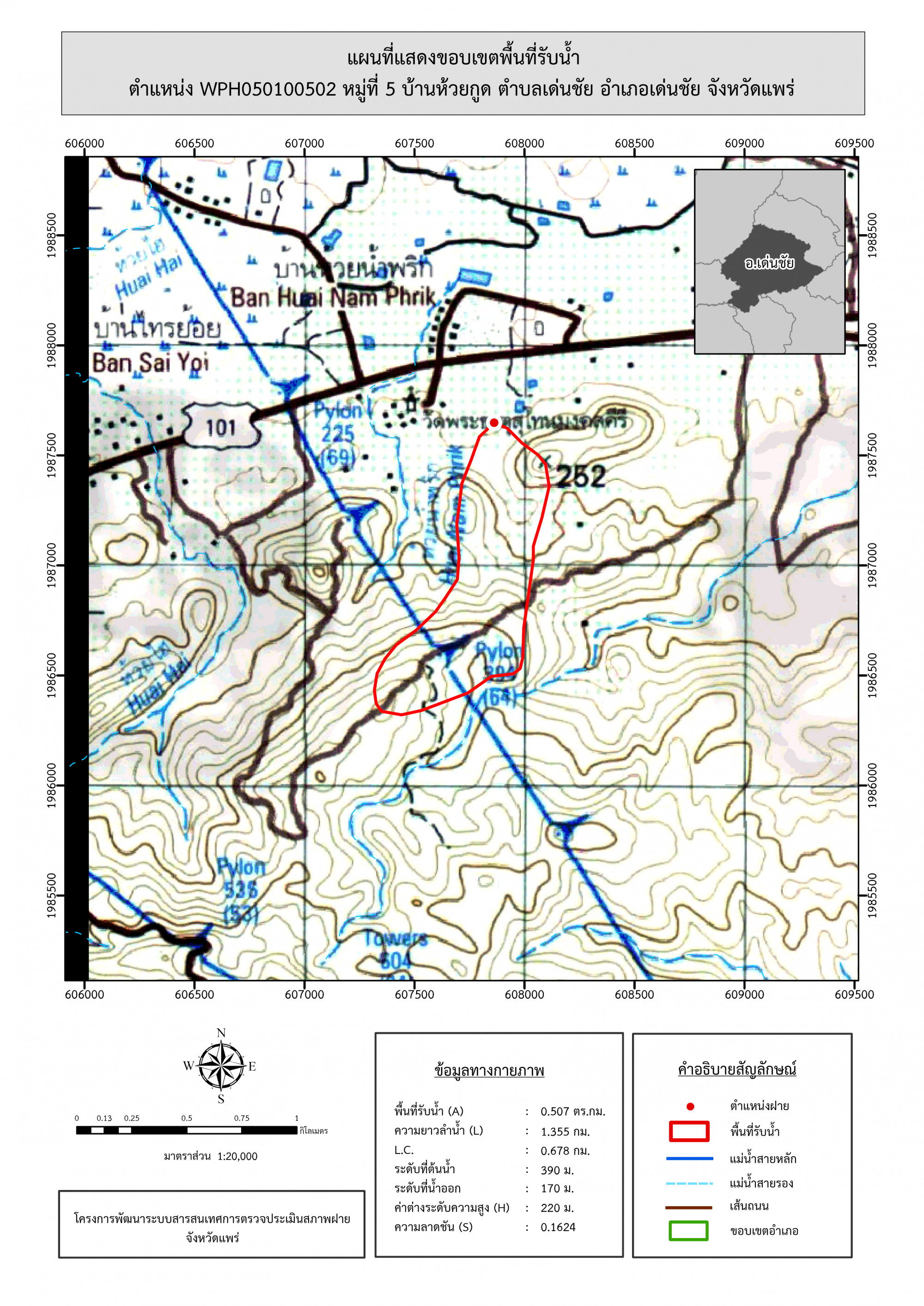 รูปภาพแผนที่แสดงขอบเขตพื้นที่รับน้ำ
