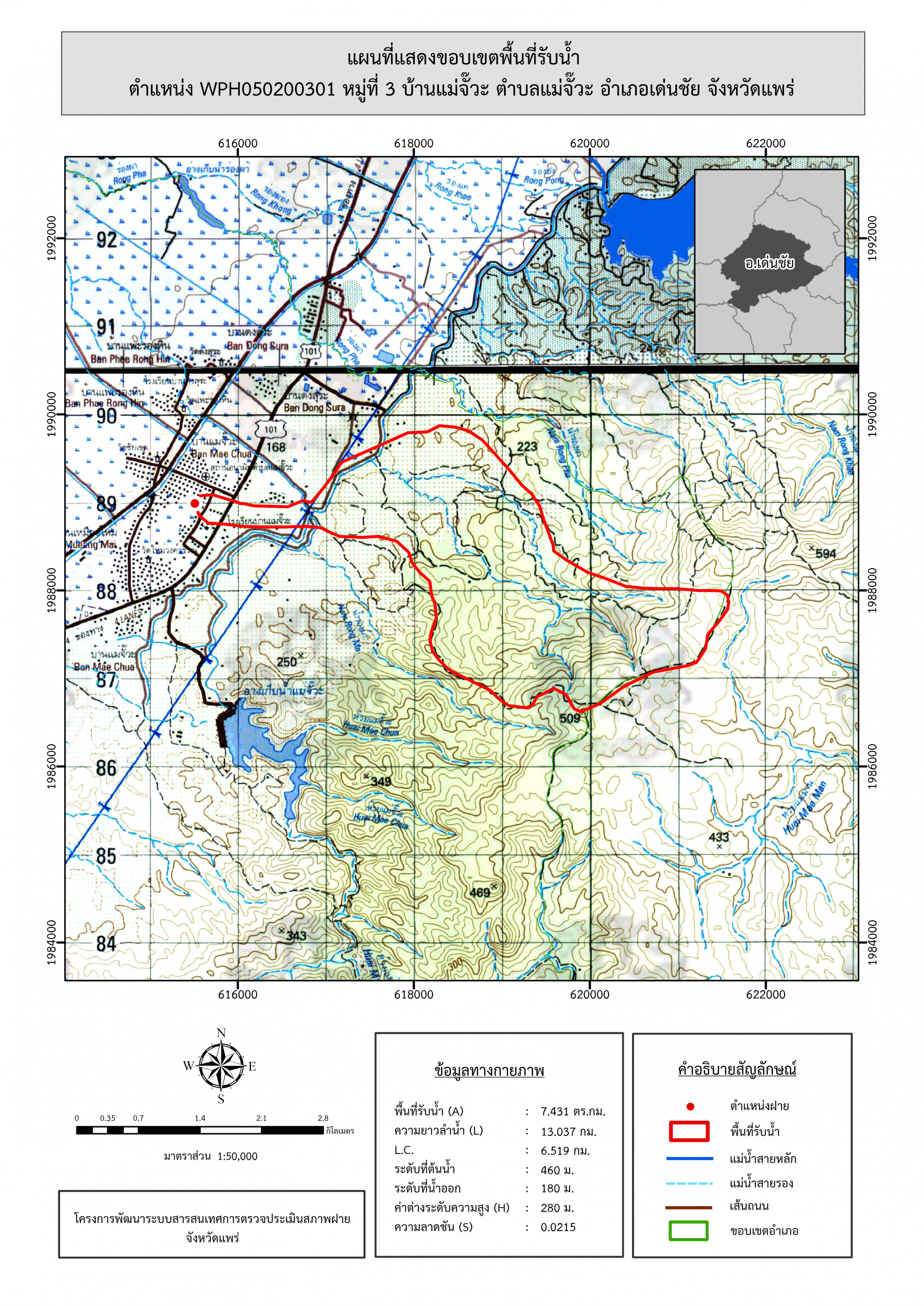 รูปภาพแผนที่แสดงขอบเขตพื้นที่รับน้ำ