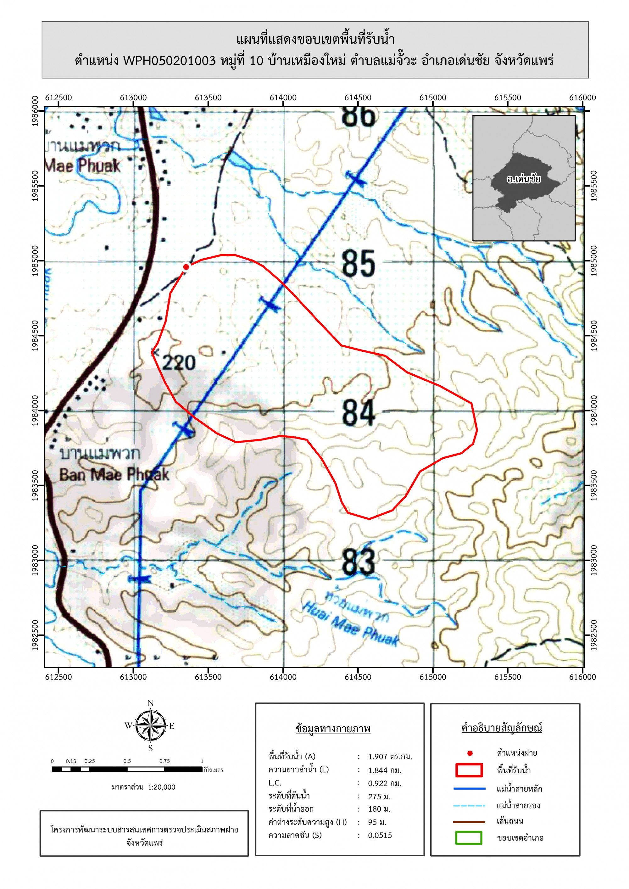 รูปภาพแผนที่แสดงขอบเขตพื้นที่รับน้ำ
