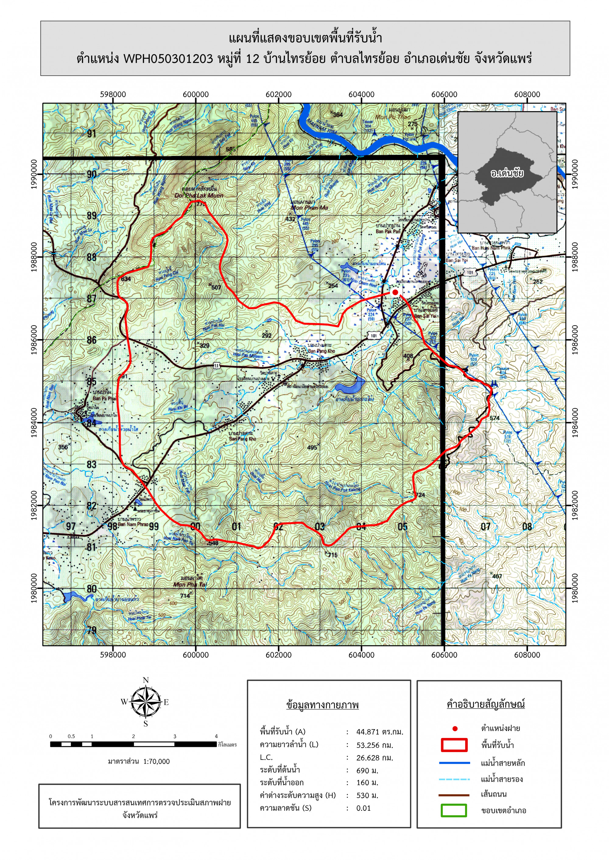 รูปภาพแผนที่แสดงขอบเขตพื้นที่รับน้ำ