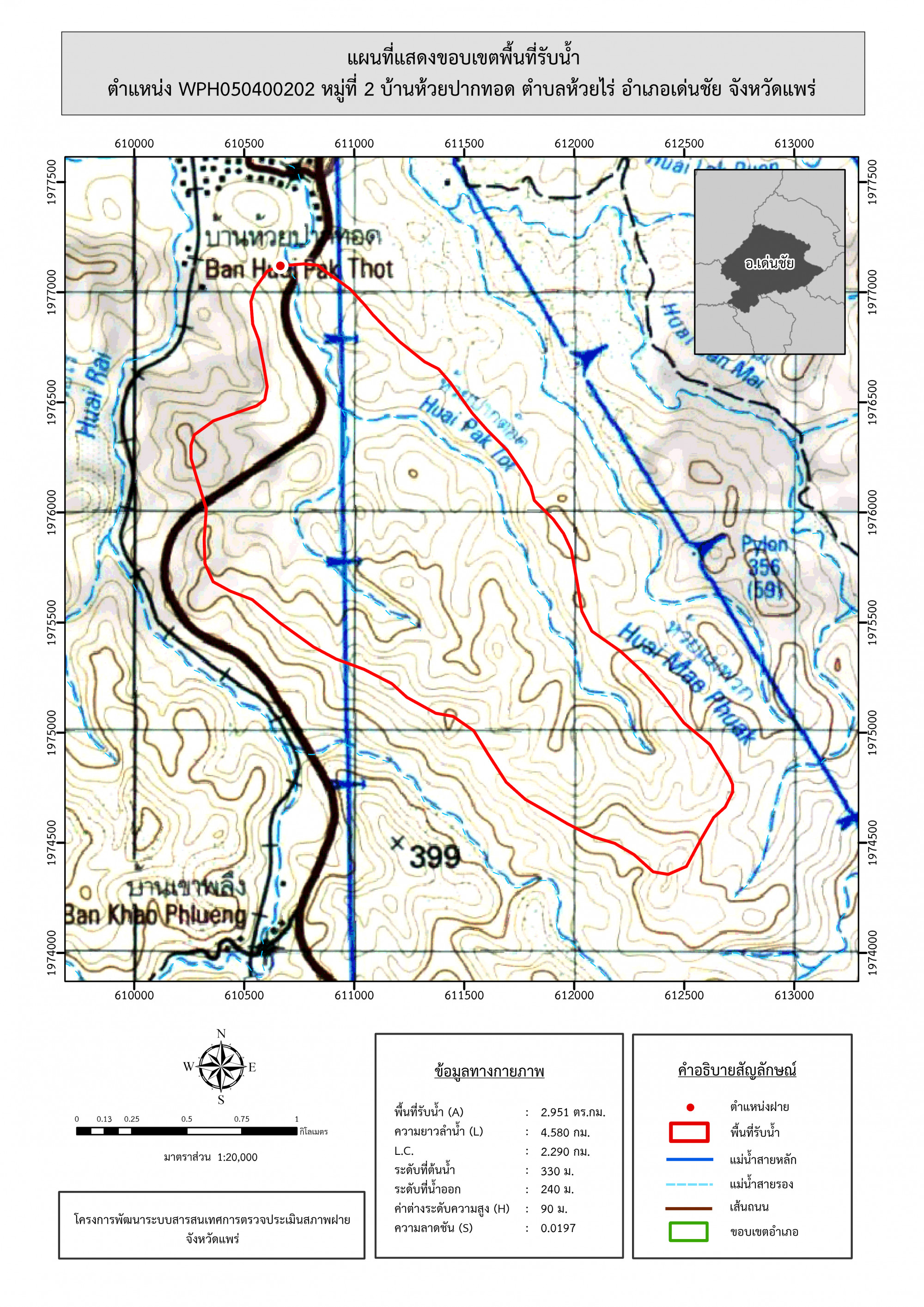 รูปภาพแผนที่แสดงขอบเขตพื้นที่รับน้ำ