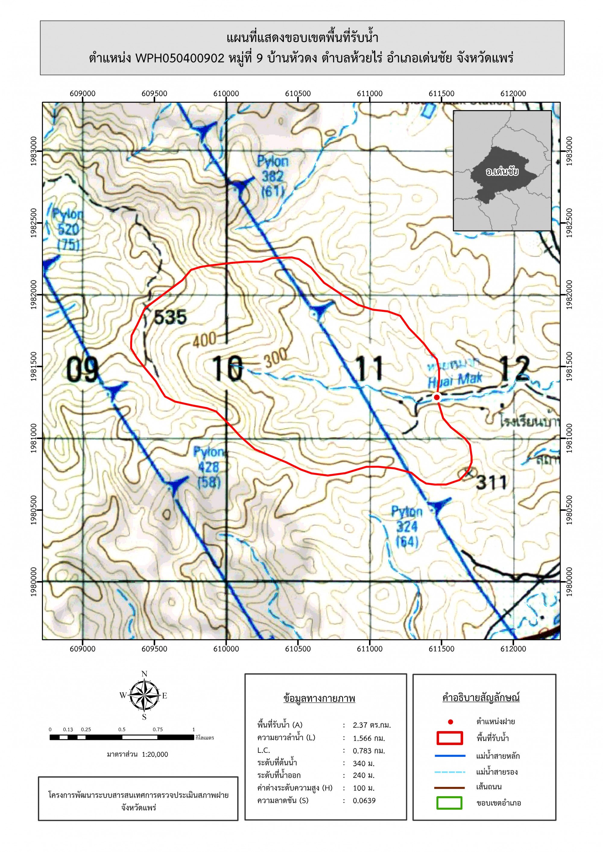 รูปภาพแผนที่แสดงขอบเขตพื้นที่รับน้ำ
