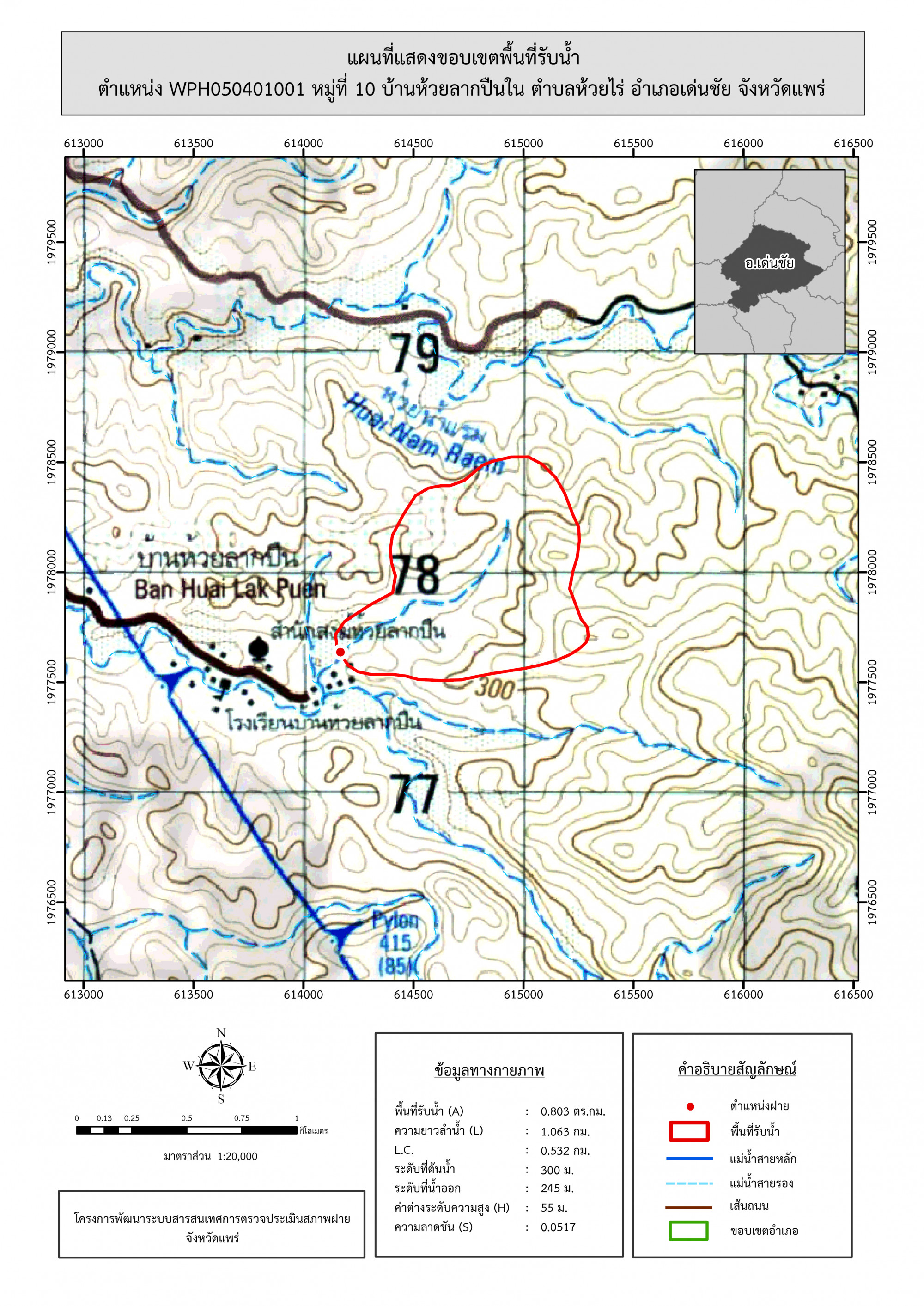 รูปภาพแผนที่แสดงขอบเขตพื้นที่รับน้ำ