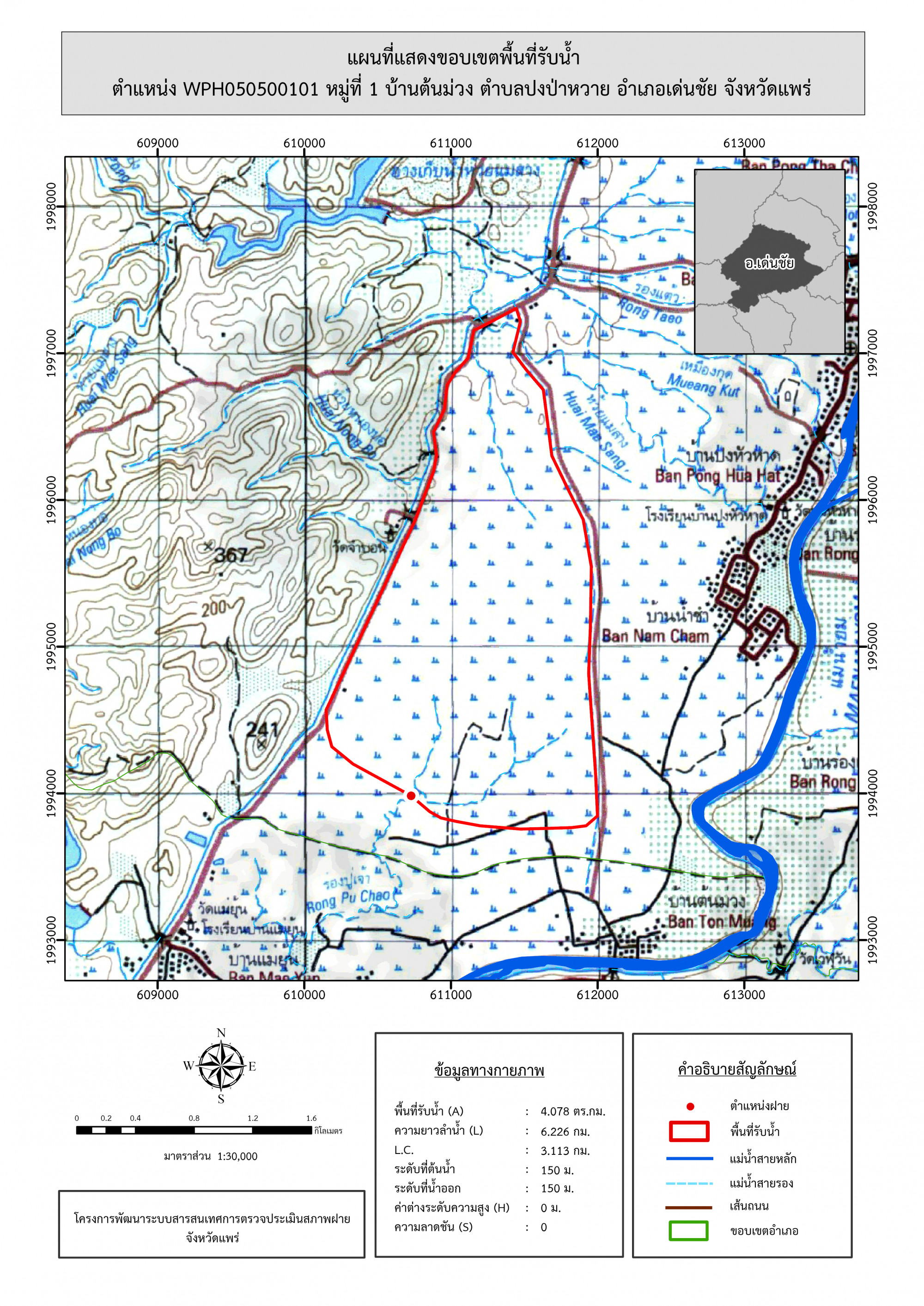 รูปภาพแผนที่แสดงขอบเขตพื้นที่รับน้ำ