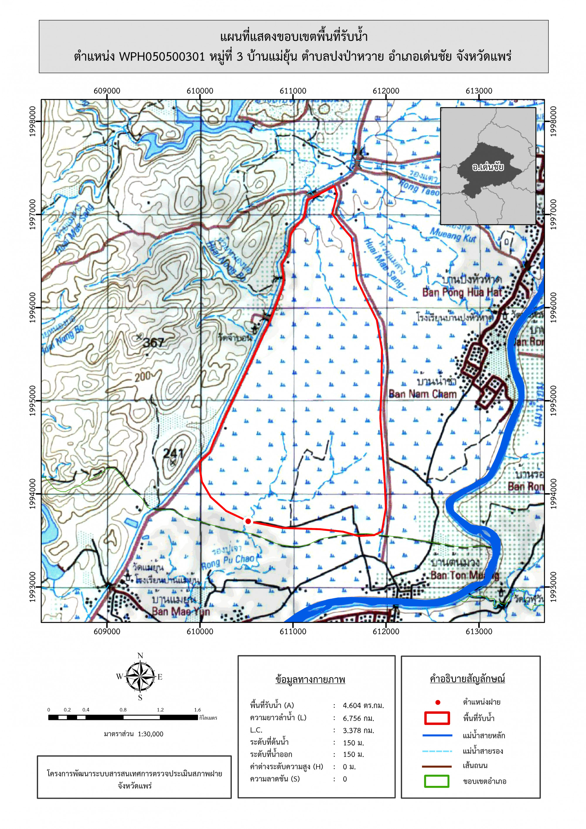 รูปภาพแผนที่แสดงขอบเขตพื้นที่รับน้ำ