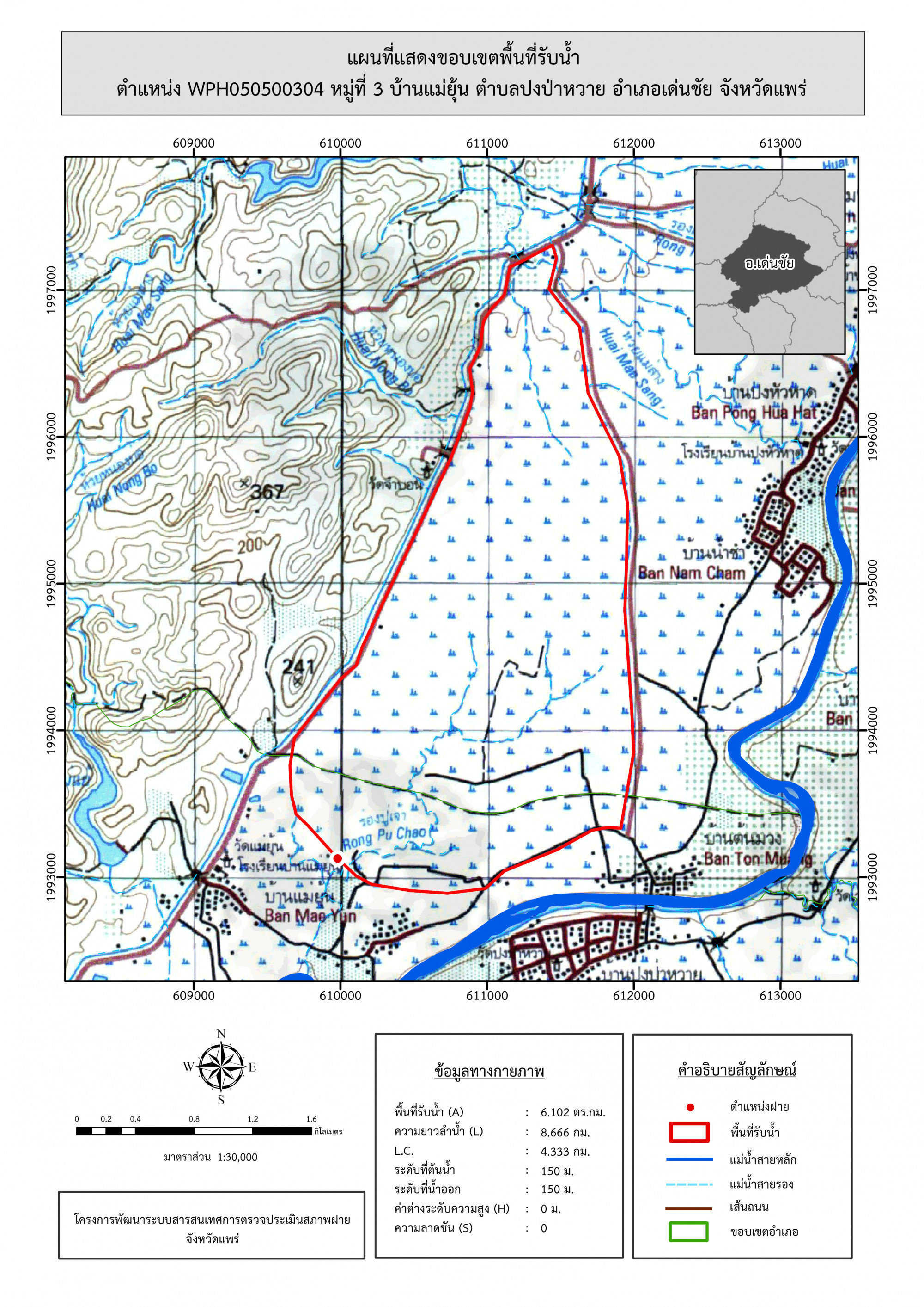 รูปภาพแผนที่แสดงขอบเขตพื้นที่รับน้ำ