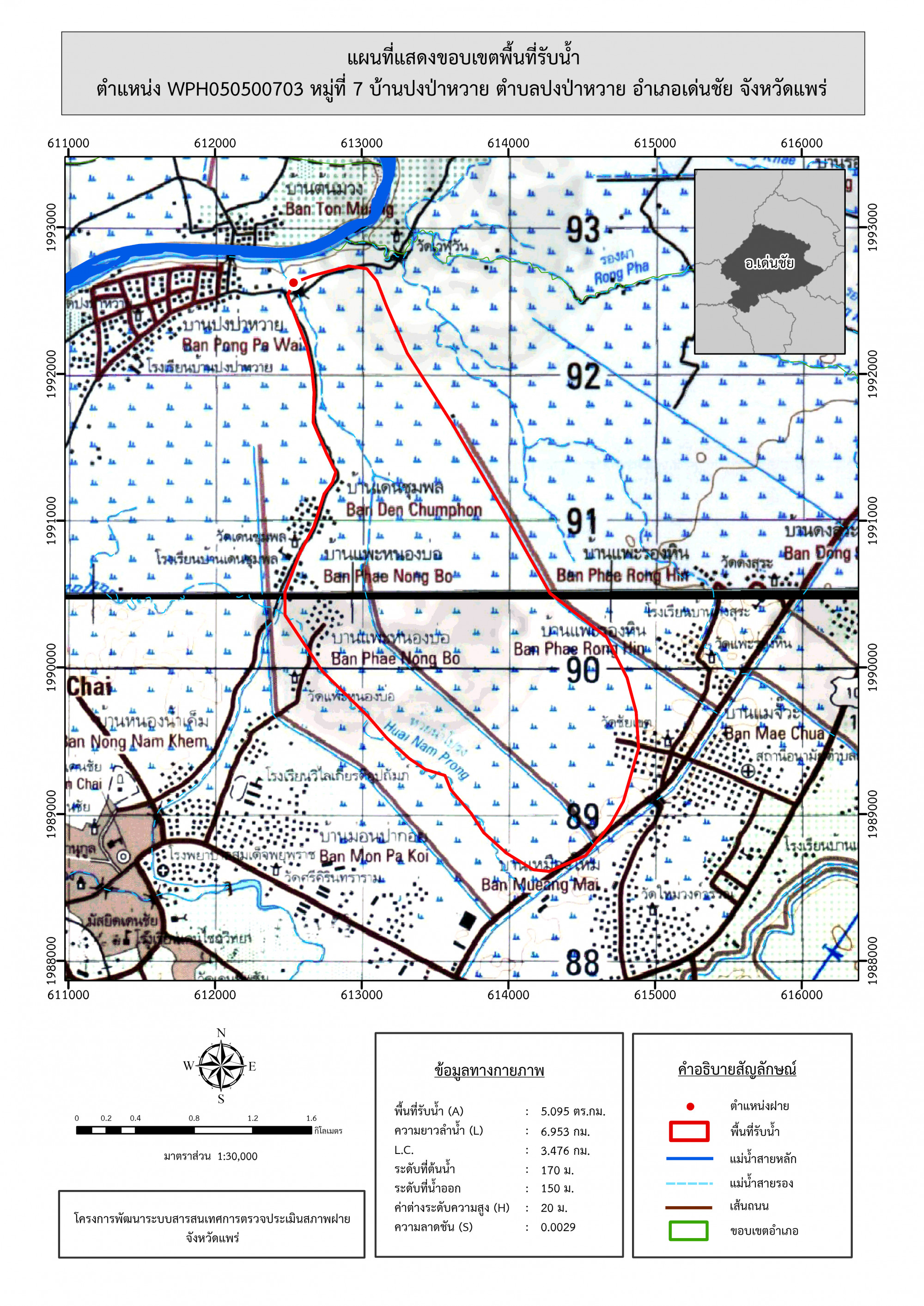 รูปภาพแผนที่แสดงขอบเขตพื้นที่รับน้ำ