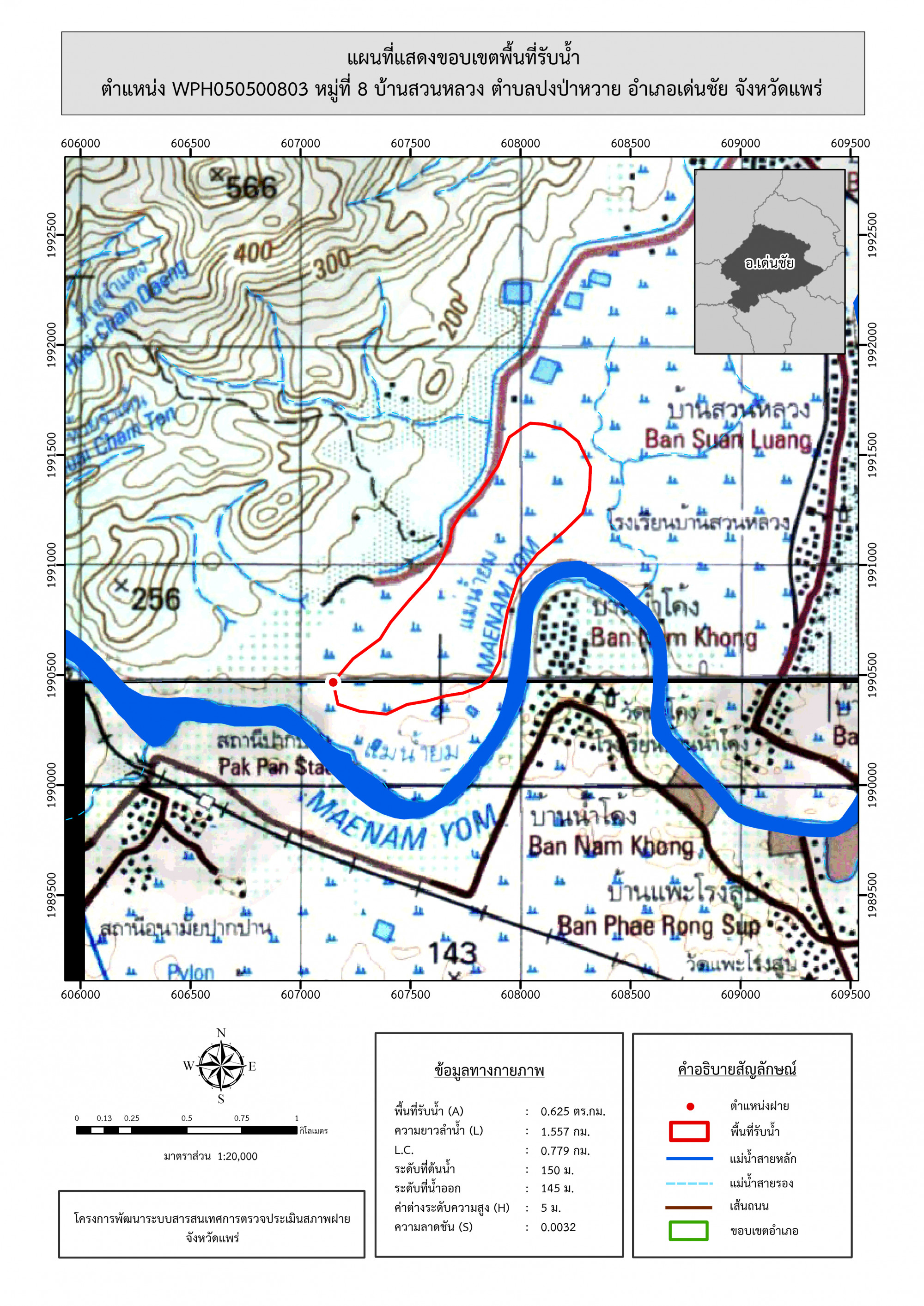 รูปภาพแผนที่แสดงขอบเขตพื้นที่รับน้ำ