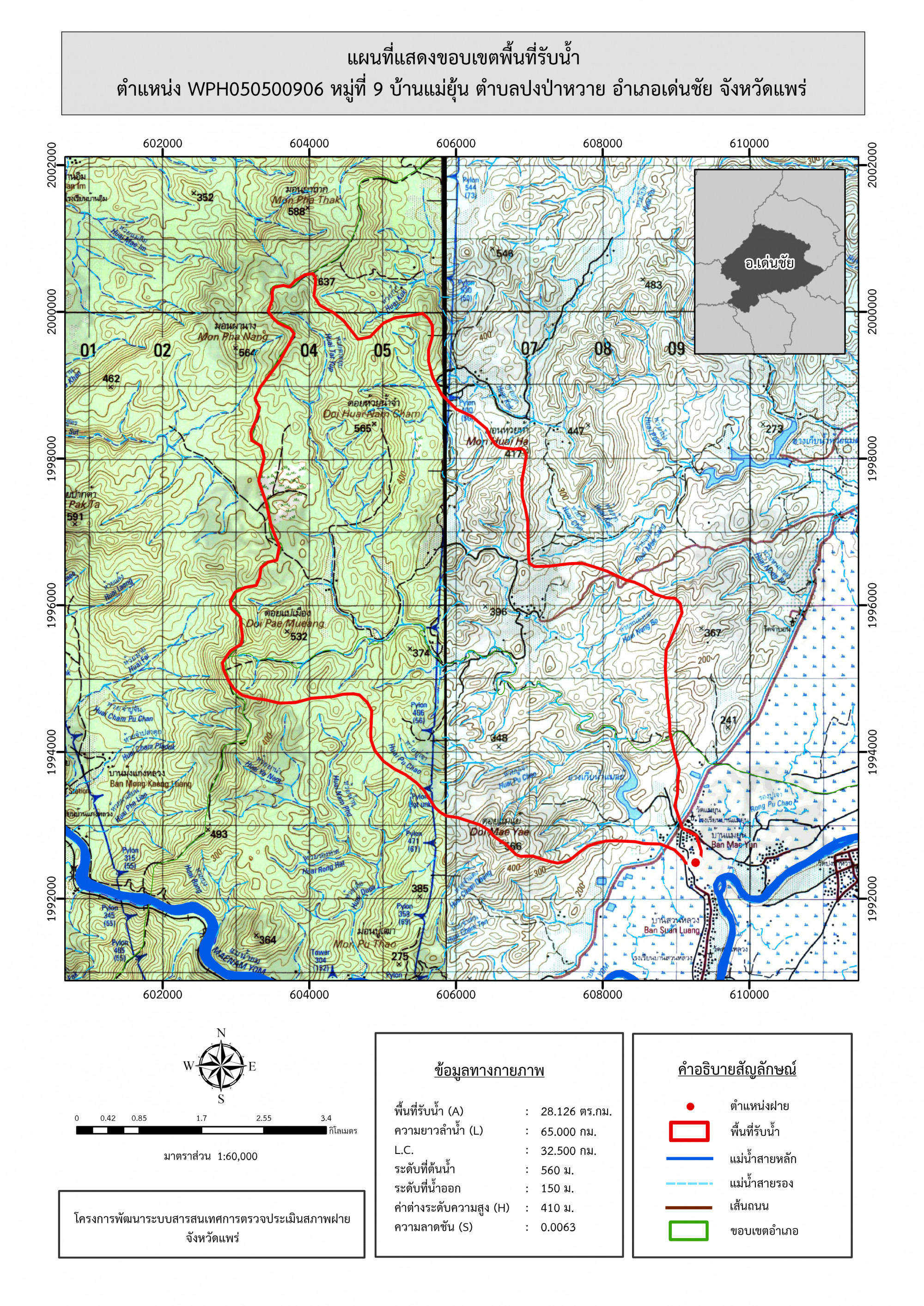 รูปภาพแผนที่แสดงขอบเขตพื้นที่รับน้ำ