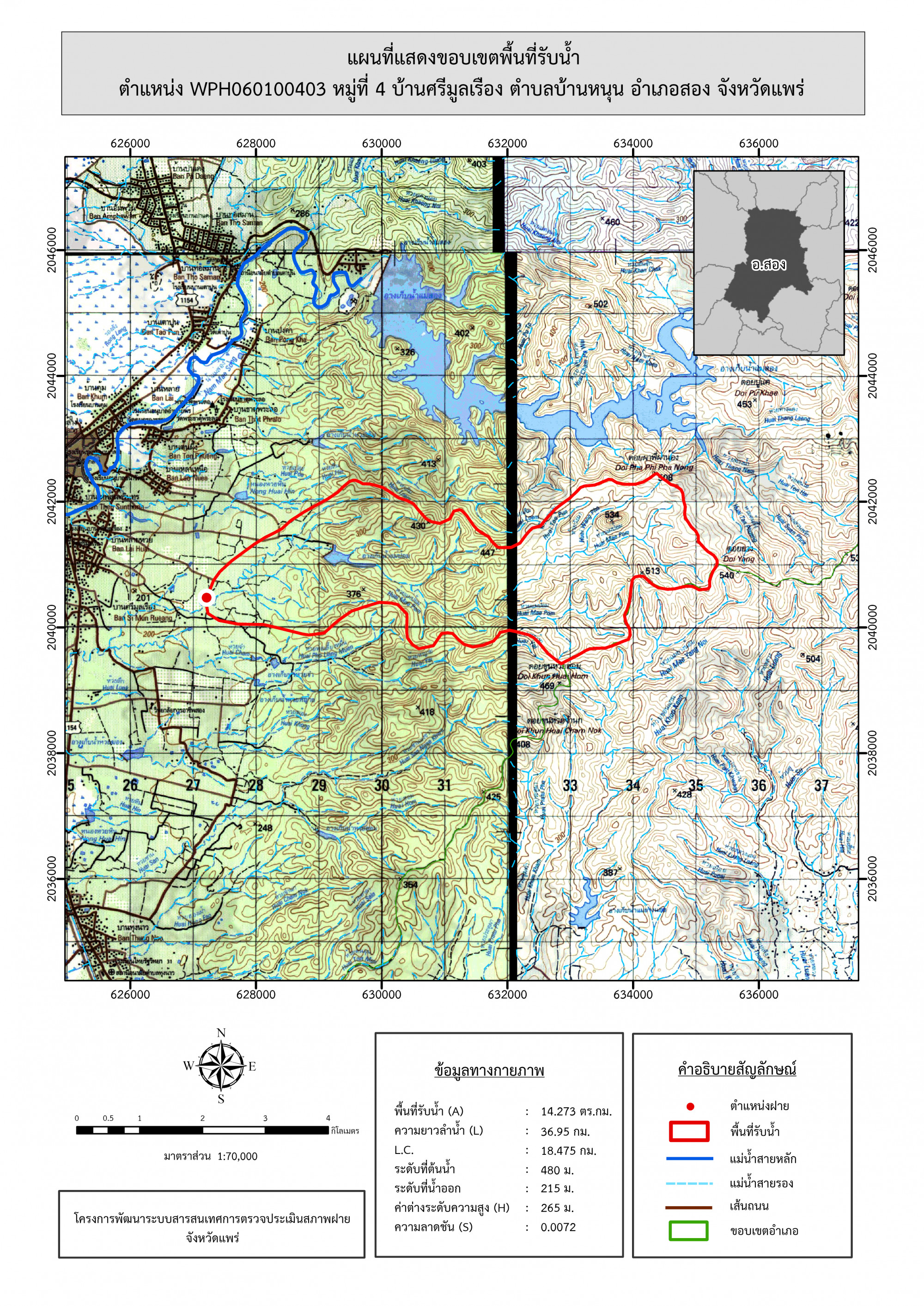 รูปภาพแผนที่แสดงขอบเขตพื้นที่รับน้ำ