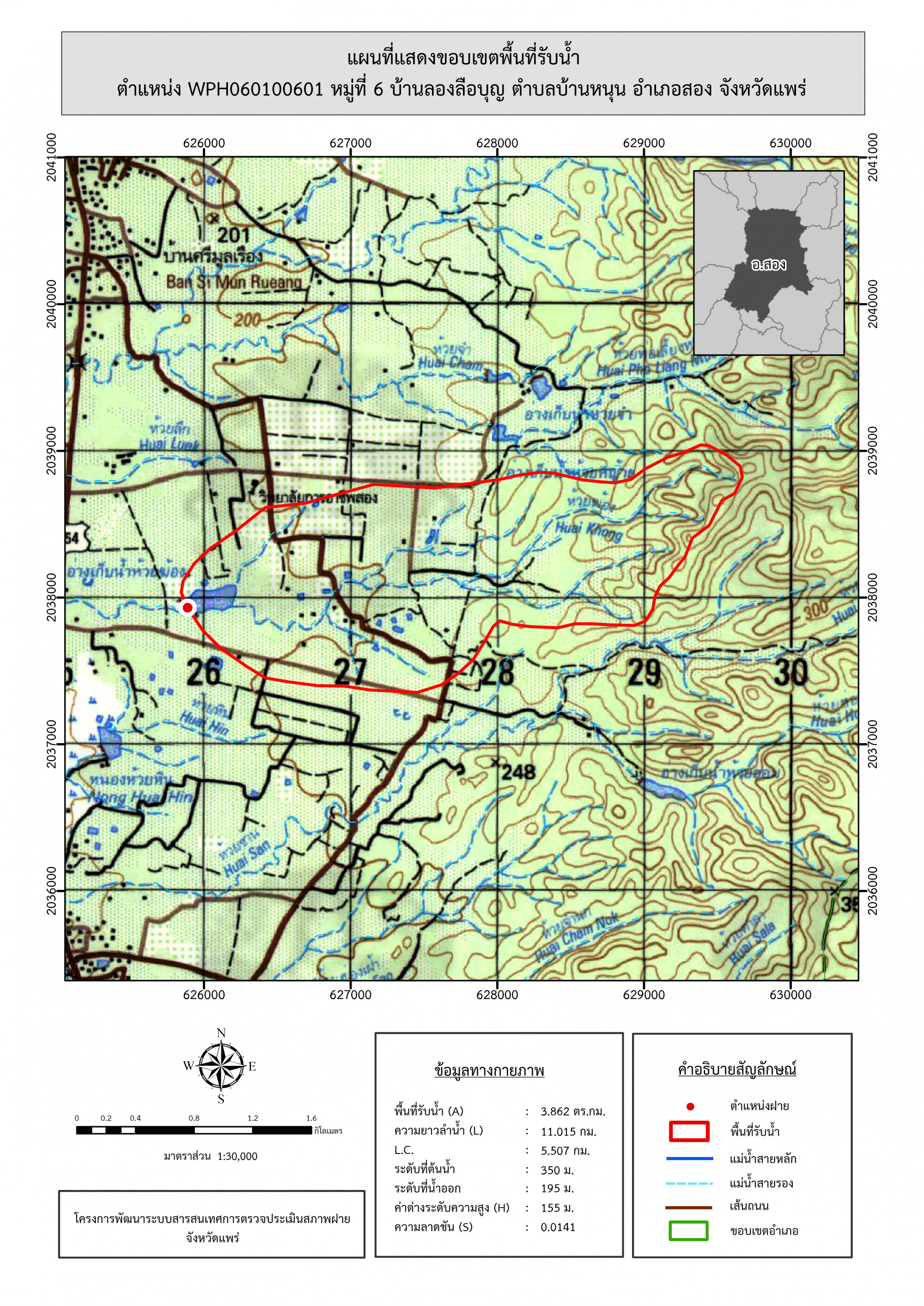 รูปภาพแผนที่แสดงขอบเขตพื้นที่รับน้ำ