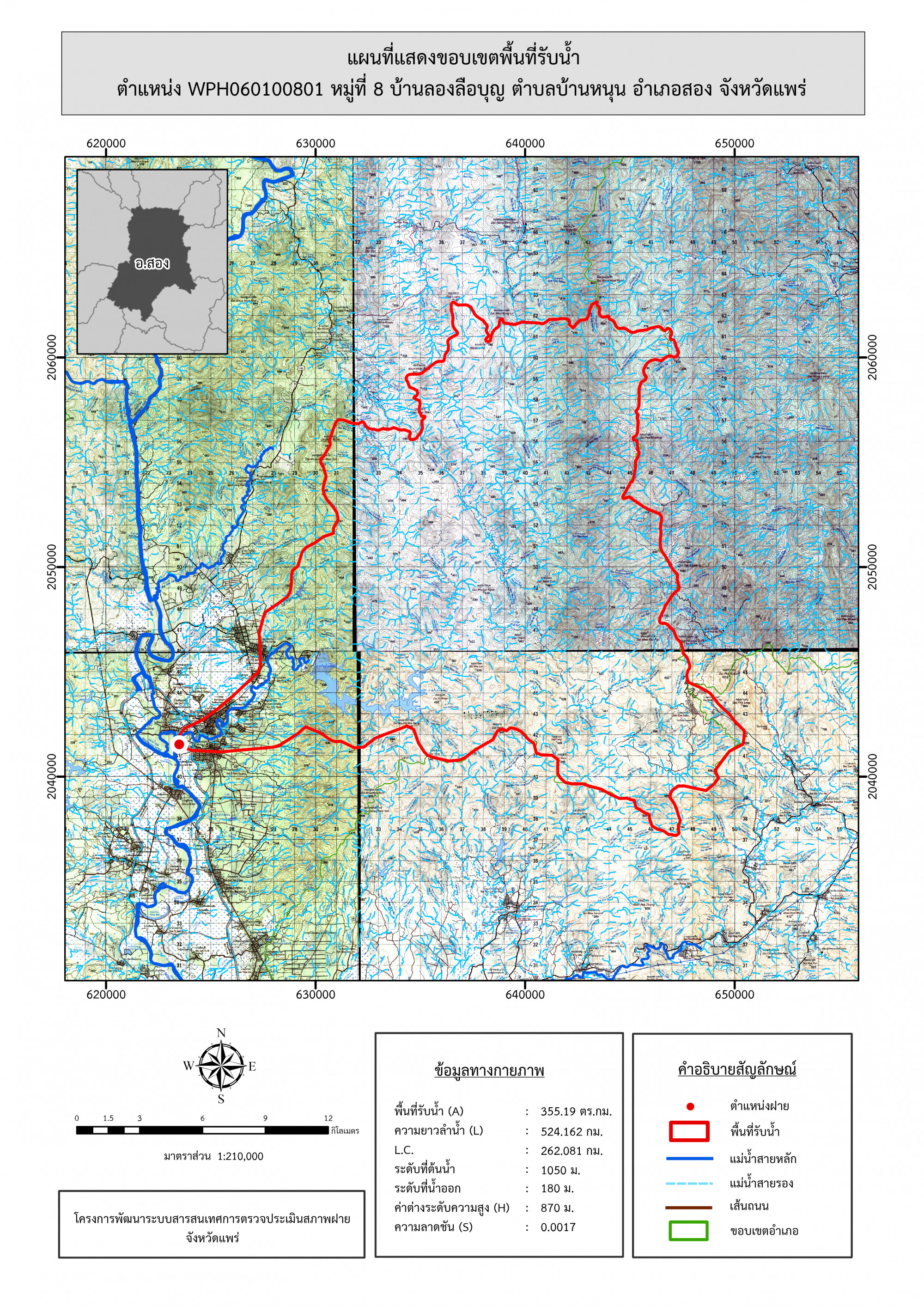 รูปภาพแผนที่แสดงขอบเขตพื้นที่รับน้ำ