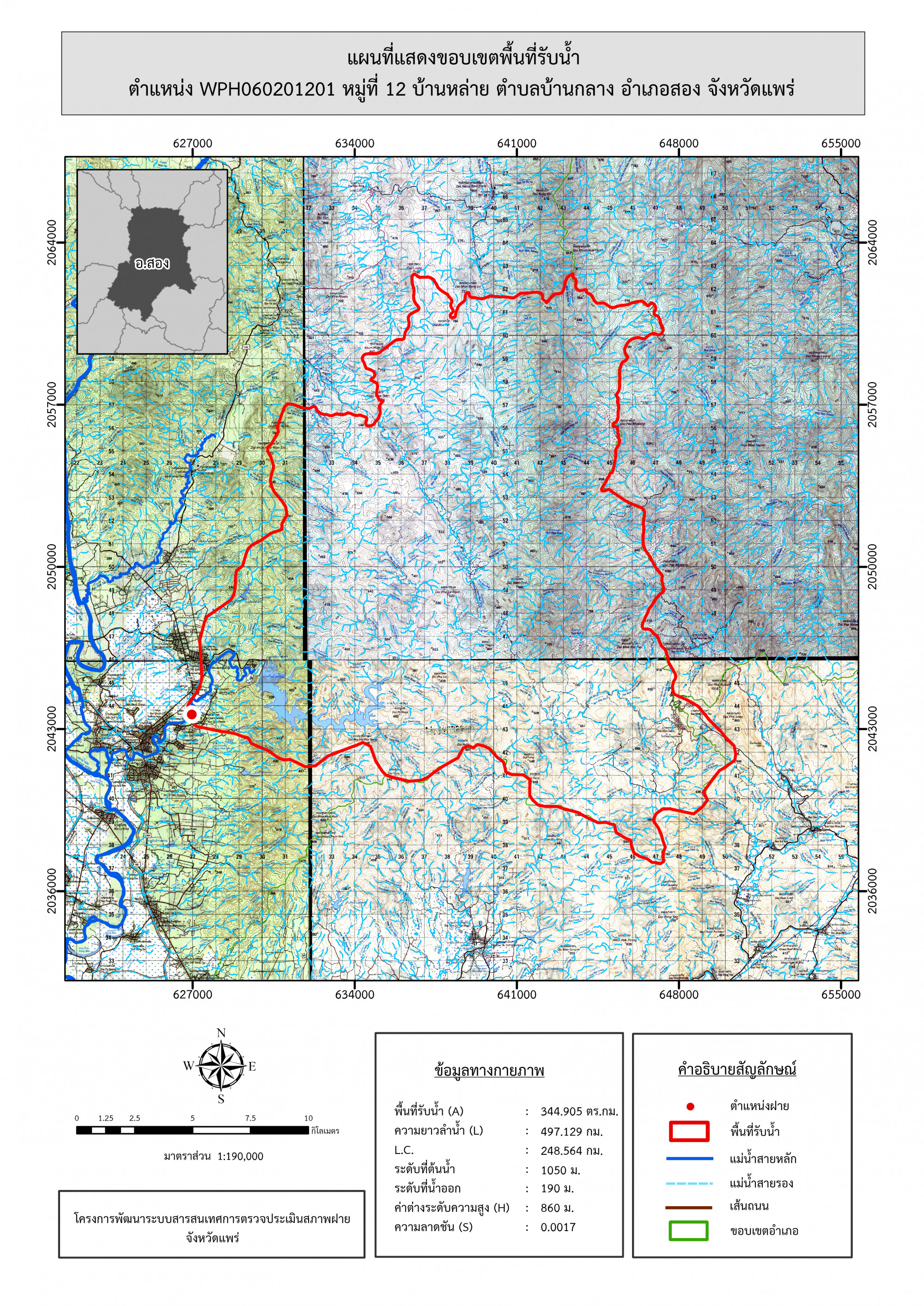 รูปภาพแผนที่แสดงขอบเขตพื้นที่รับน้ำ