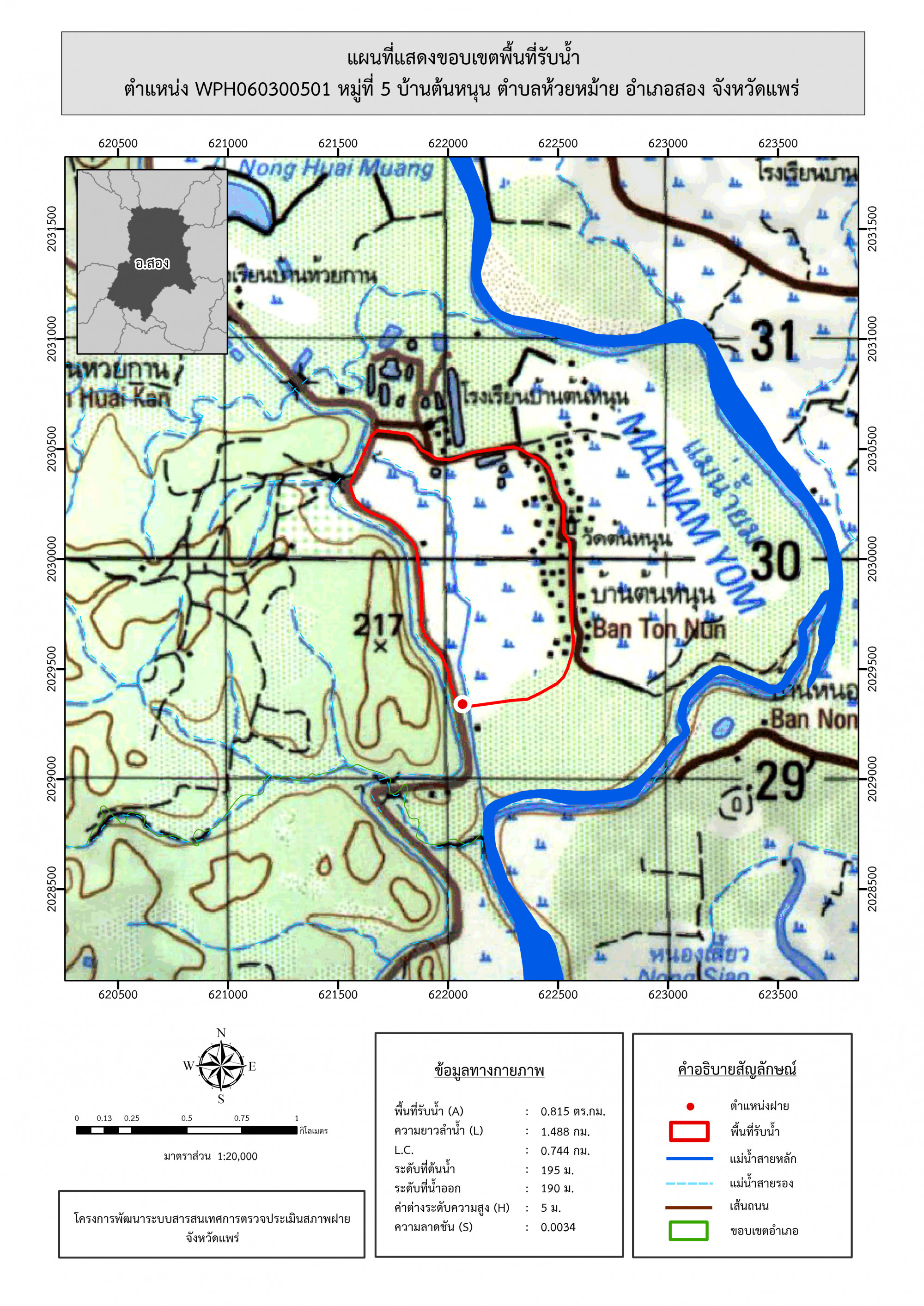 รูปภาพแผนที่แสดงขอบเขตพื้นที่รับน้ำ